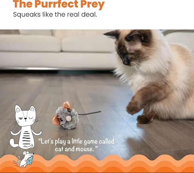 ·The Squeak Squeak Mouse from Catstages mimics a real mouse, activating your kitty’s hunting instincts for endless squeaky fun