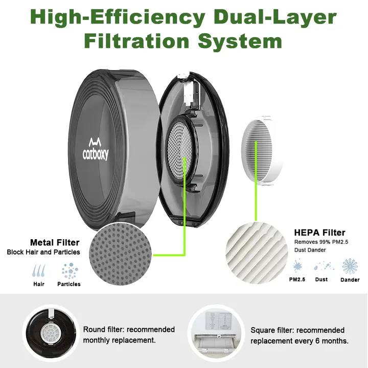 HEPA Filter System: HEPA and steel mesh filter traps 99% of particles to ensure clean, hygienic air for your pets