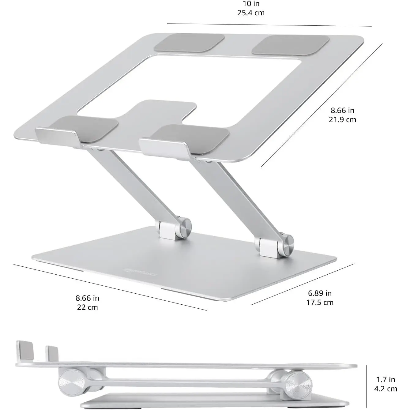 Tired of neck aches from hunching over your laptop? This Amazon Basics ergonomic laptop stand is here to save your posture and boost productivity. Its foldable Z-style design lets you adjust height and tilt for comfortable viewing, perfect for long work sessions or casual browsing. The stand fits laptops and notebooks up to 17.3 inches, secured by non-slip silicone pads so your device stays put. Plus, the open frame design helps air circulate around your laptop, keeping it cool even during intense work or streaming marathons. When you’re done, fold it flat and use the built-in carry handle to take it anywhere—home, office, or your favorite coffee spot. Dimensions are a compact 10 x 8.7 x 6 inches, making it a sleek silver addition to your workspace. Upgrade your desk setup with this versatile, portable stand and enjoy a comfy, organized workday. Ready to say goodbye to neck strain? Grab yours now and work smarter, not harder!