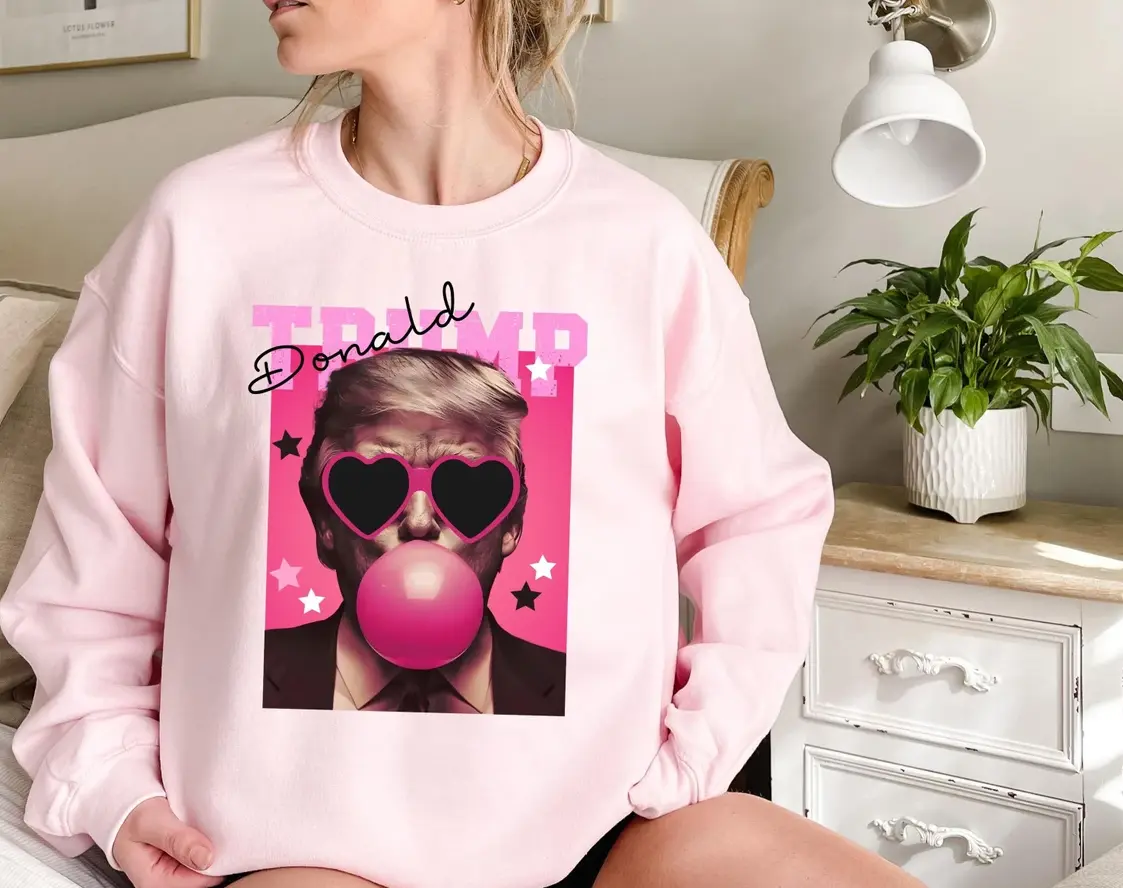 Donald Trump Sweatshirt, Trump Pink Sun Glasses, Trump Bubble Gum Tshirt, Bubblegum Trump Sweatshirt Funny Trump Sweater
