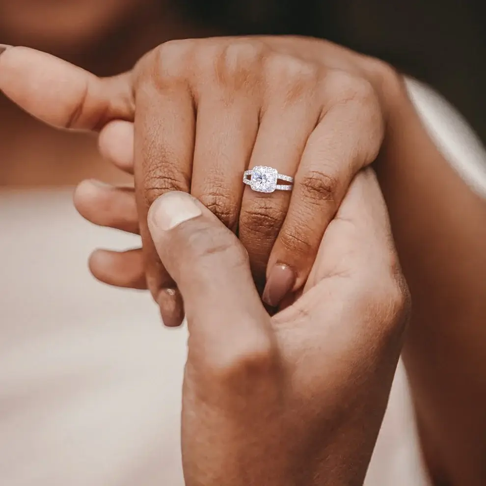 I absolutely love this wedding set! It's gorgeous and it fits perfectly! It looks and shines like real diamonds! I would definitely recommend this ring! It's even more beautiful in person than online!