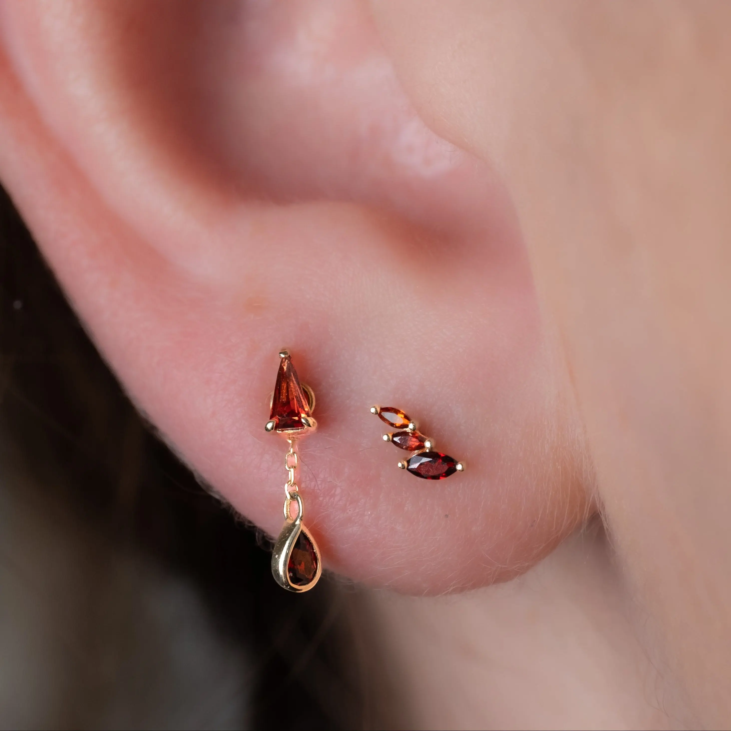 ·Gemstone: (1) 4 x 2mm and (2) 2.5 x 1.5mm Marquise cut Garnets