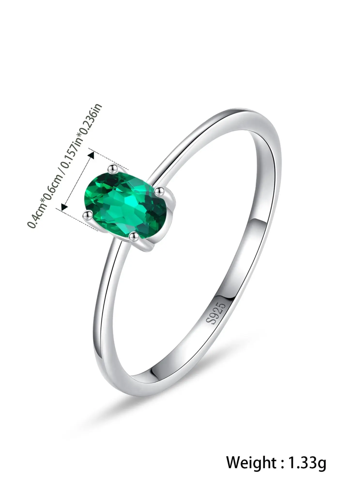 925 Sterling Silver Minimalism Oval Shining Green Zircon Ring, Fashion Jewelry for Party, Daily Clothing Decor, Trendy All-match & Exquisite Jewelry for Birthday Gift