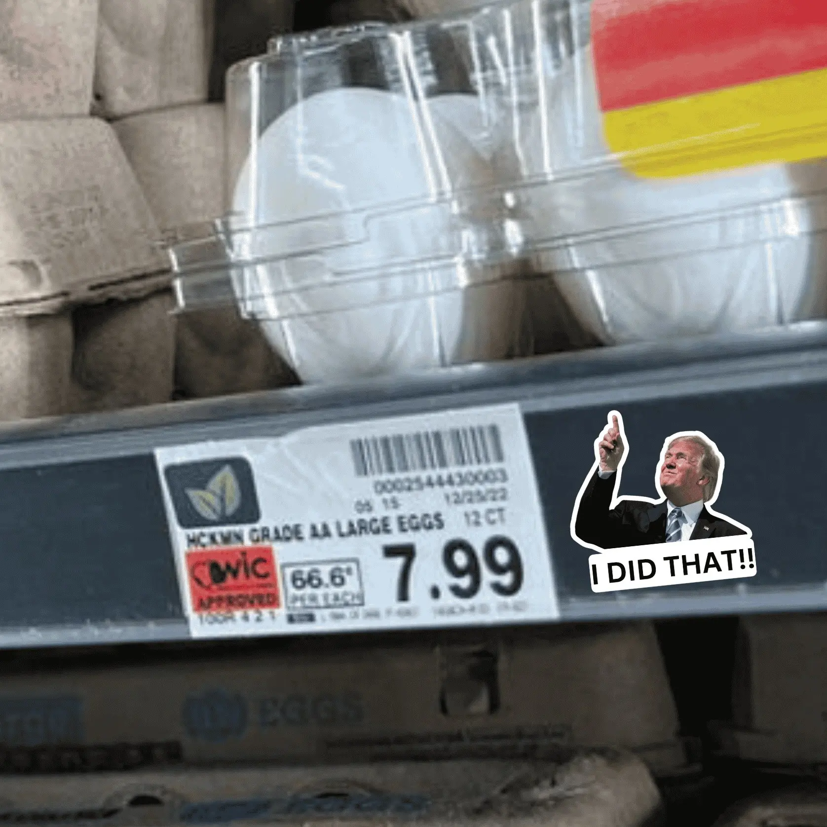 Make a bold statement with this Donald Trump ‘I Did That’ sticker, featuring Trump pointing with the text “I Did That!!” underneath. This hilarious sticker is perfect for gas pumps, grocery store shelves, or anywhere you want to call attention to high prices caused by tariffs. Whether you want to buy in bulk or just mark your favorite screw-up, this sticker has you covered!