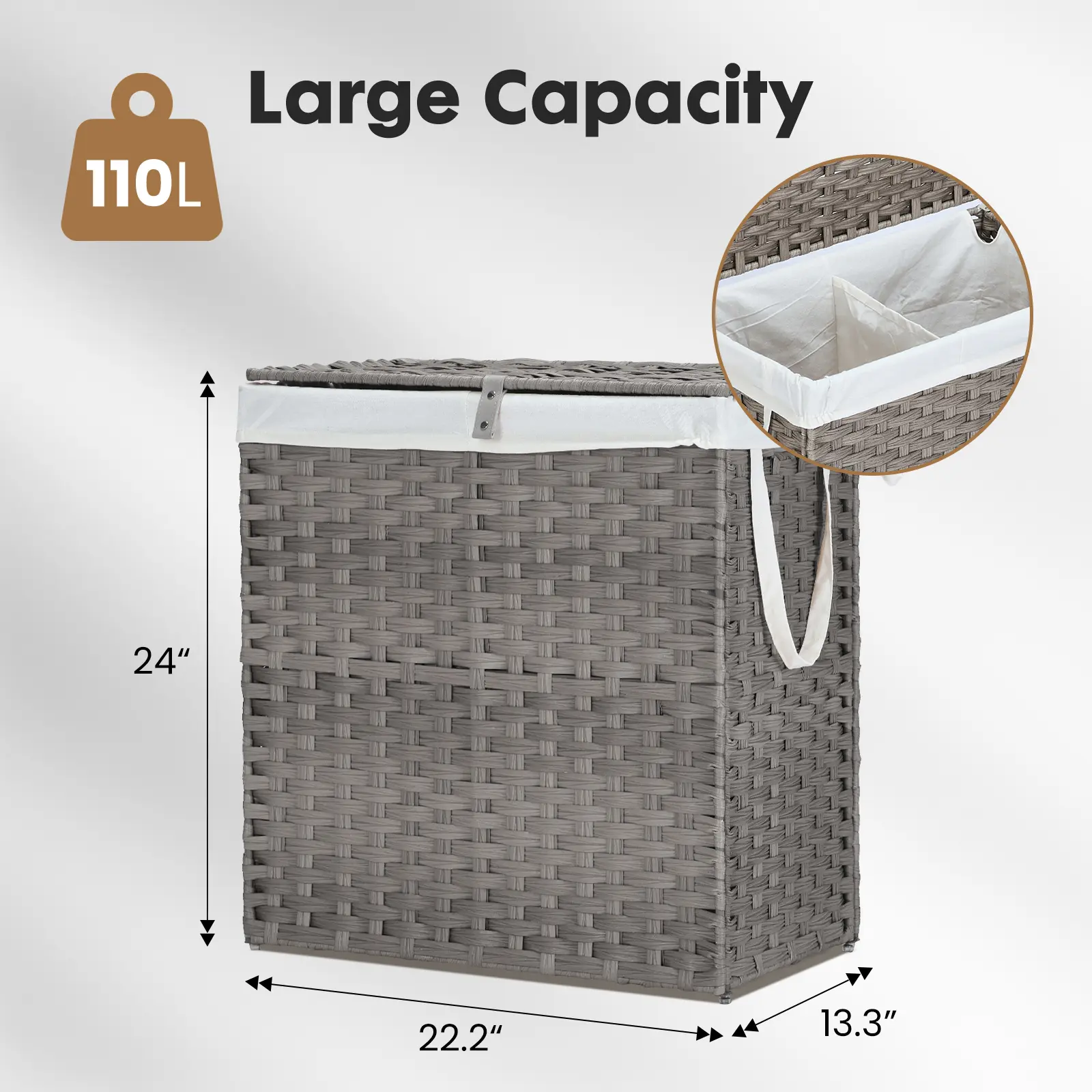 ·Spacious & Strong–90L/110L Large Capacity: Designed to hold up to 55 lbs (25 kg), this laundry hamper offers generous storage space to meet the needs of families, individuals, or shared spaces. Choose between the 90L or 110L capacity to easily organize clothes, towels, blankets, and more.