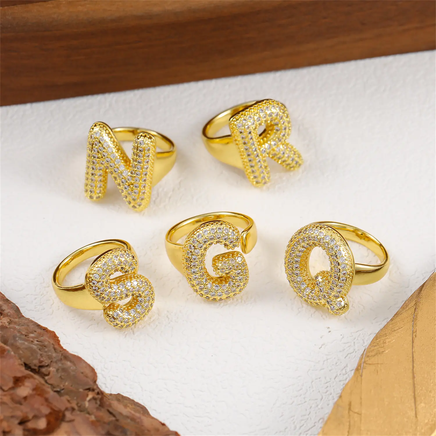 🌟 GGRIL Bubble 14K Gold Plated Initial Rings for Women 🌟