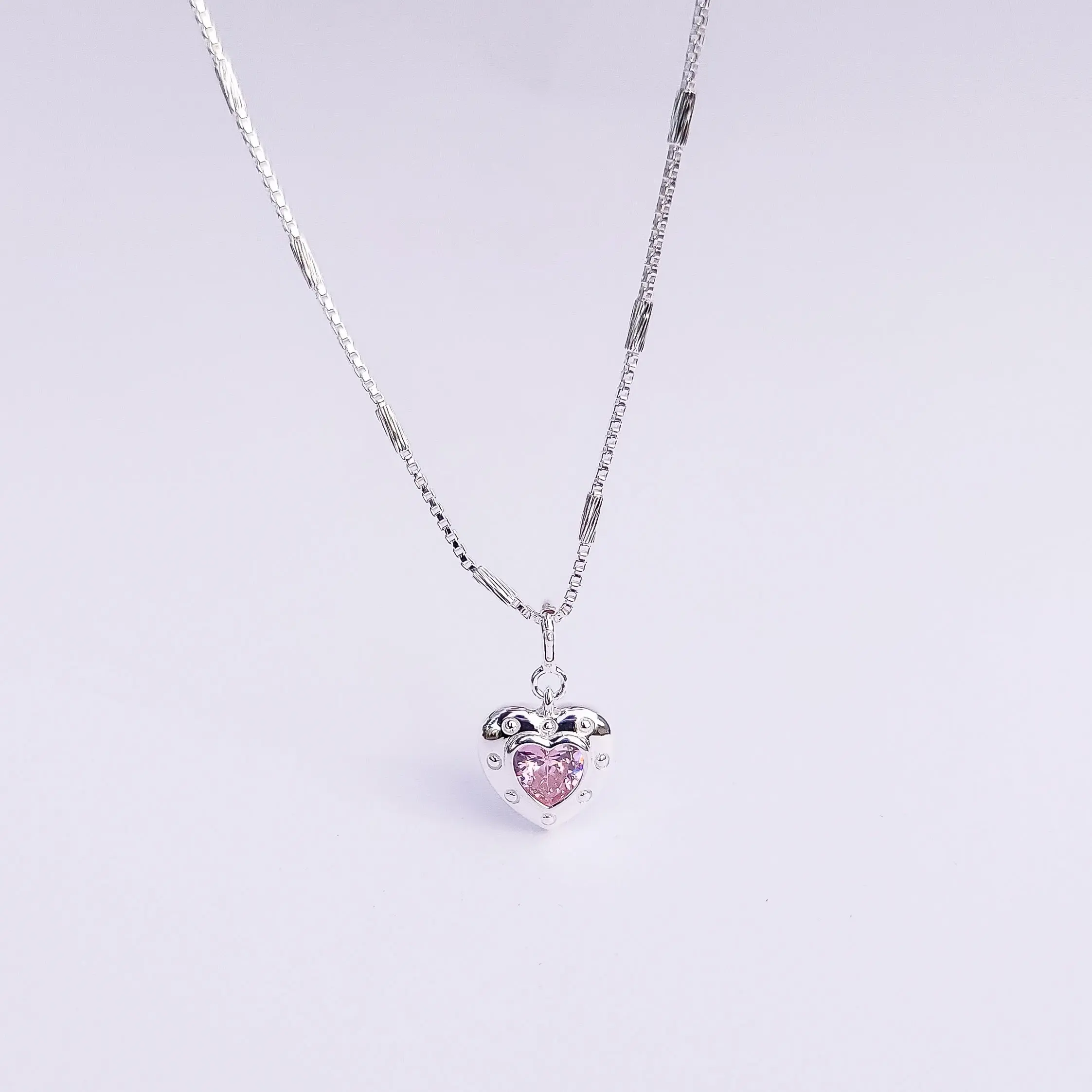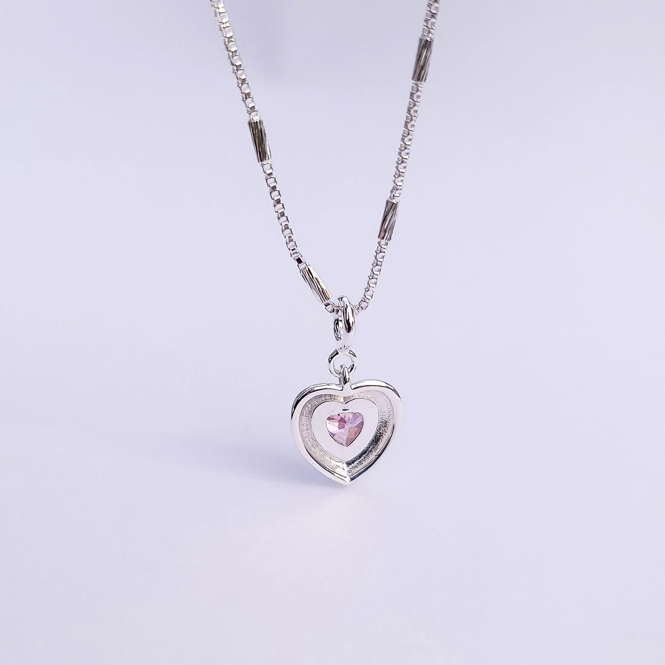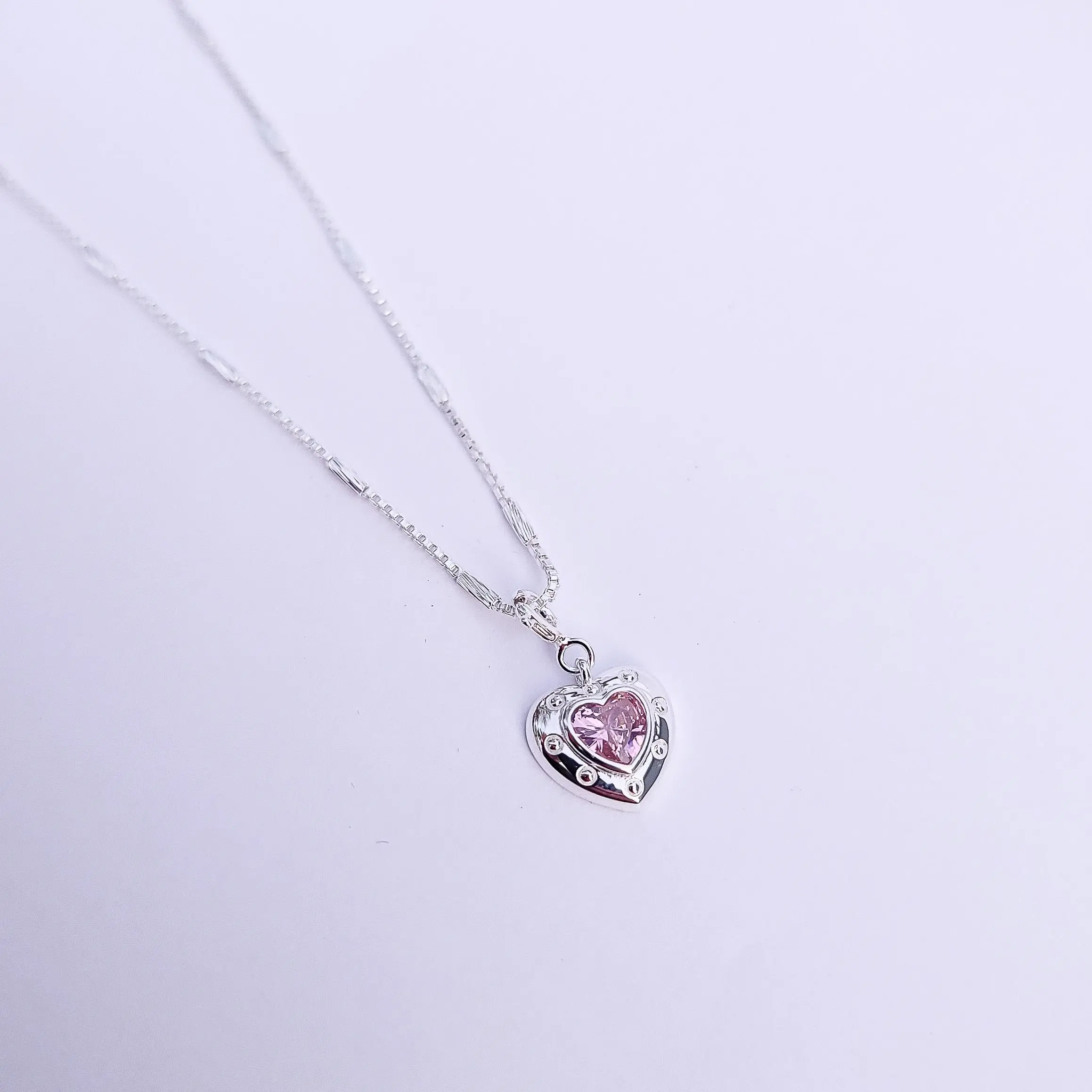 Introducing our Pink Glam Heart Necklace - crafted in Sterling Silver with a heart-shaped pink crystal at its core. This unique chain necklace features a sparkling pink crystal heart pendant, on a Sterling Silver heart shape base adding sophistication to any look. Wear it long or short with the adjustable clasp. Elevate your style with this enchanting piece that radiates love and glamour.