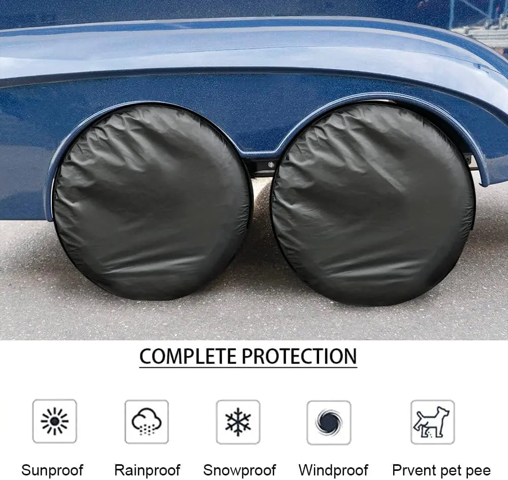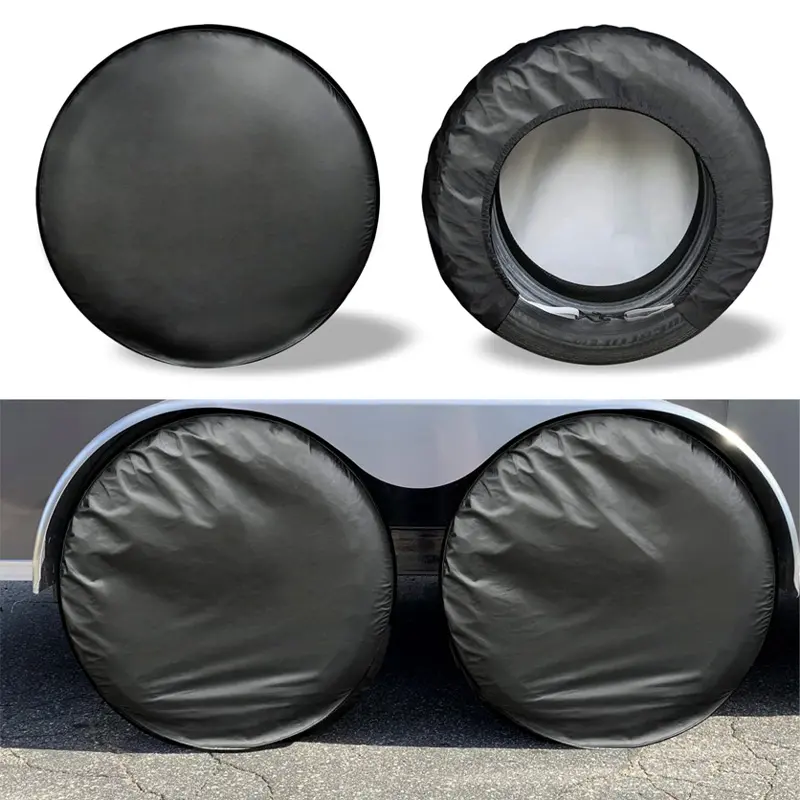 Trailer tire covers protect tires from sun damage, corrosion, and various weather conditions when parked. They keep wheels in good shape, extending service life.