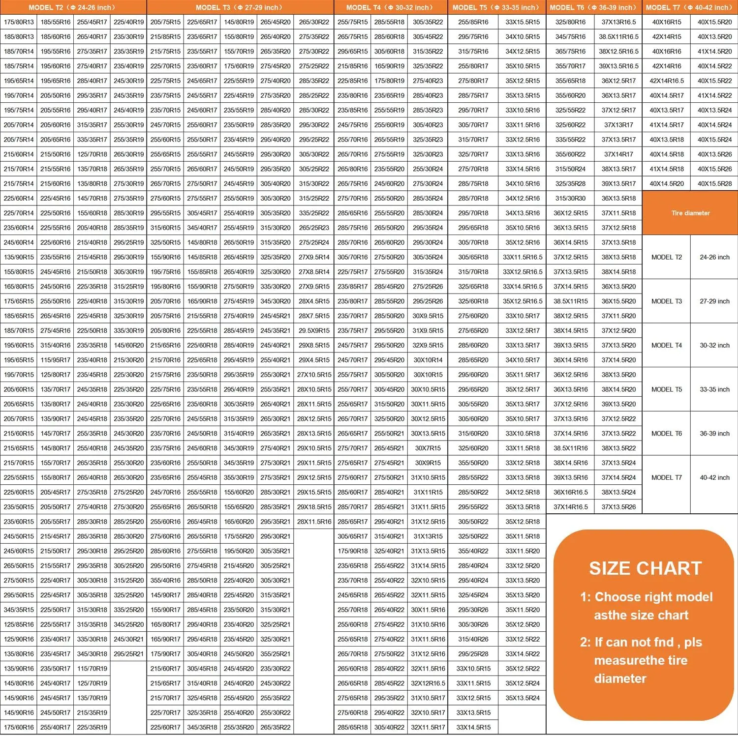 Four-Black-PE, T2-M-24-26 Inch Tire Diameters