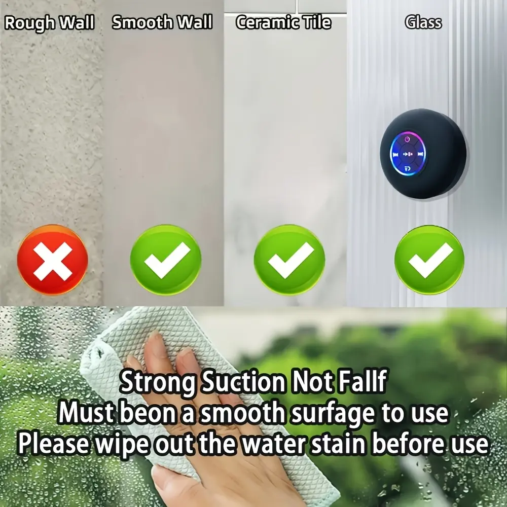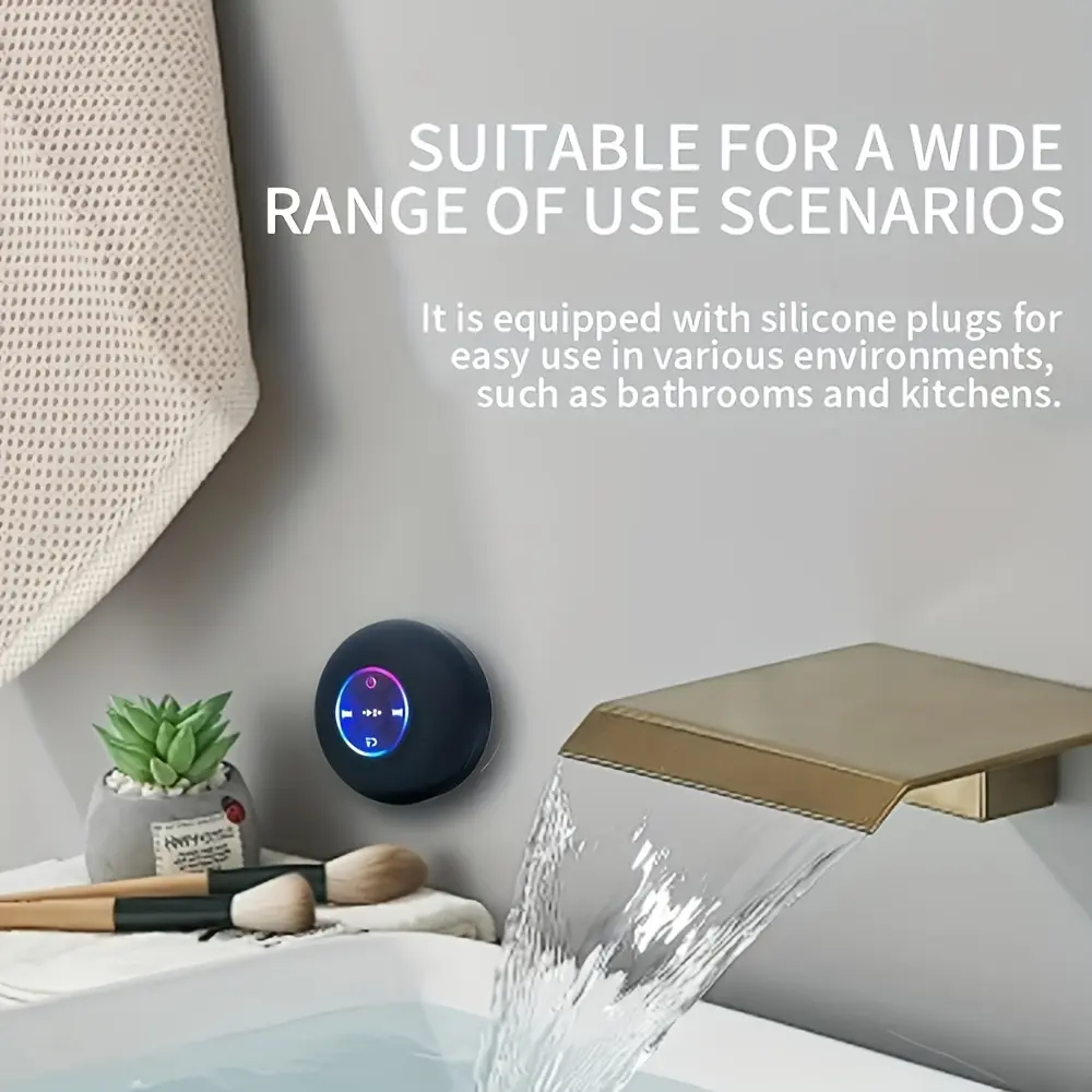 Ever wanted to jam out in the shower or chill at the beach without worrying about your speaker? This mini Bluetooth shower speaker is your new best buddy! With IPX4 waterproofing, it handles splashes and steam like a champ—just remember to keep the charging port sealed. Bluetooth 5.0 delivers stable, clear sound up to 10 meters away, while the strong bass and pure tones pump up your favorite playlists. The hands-free speakerphone means you can take calls mid-shampoo without skipping a beat. Plus, the colorful LED lights flash in sync with your tunes, adding a fun vibe wherever you stick it with the large suction cup. Recharge easily using the Micro USB cable included in the box. Whether you’re at home, hitting the beach, or just want some tunes in the shower, this speaker has you covered. Ready to upgrade your sound experience? Grab this waterproof, wireless speaker and let the good times roll!