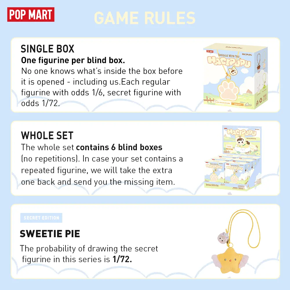 “Blind box” means no one knows which exact figurine of the series you may get before opening—nor do us. A regular figurine will be replaced if the secret edition appears in the whole set (big congratulations!!!)
