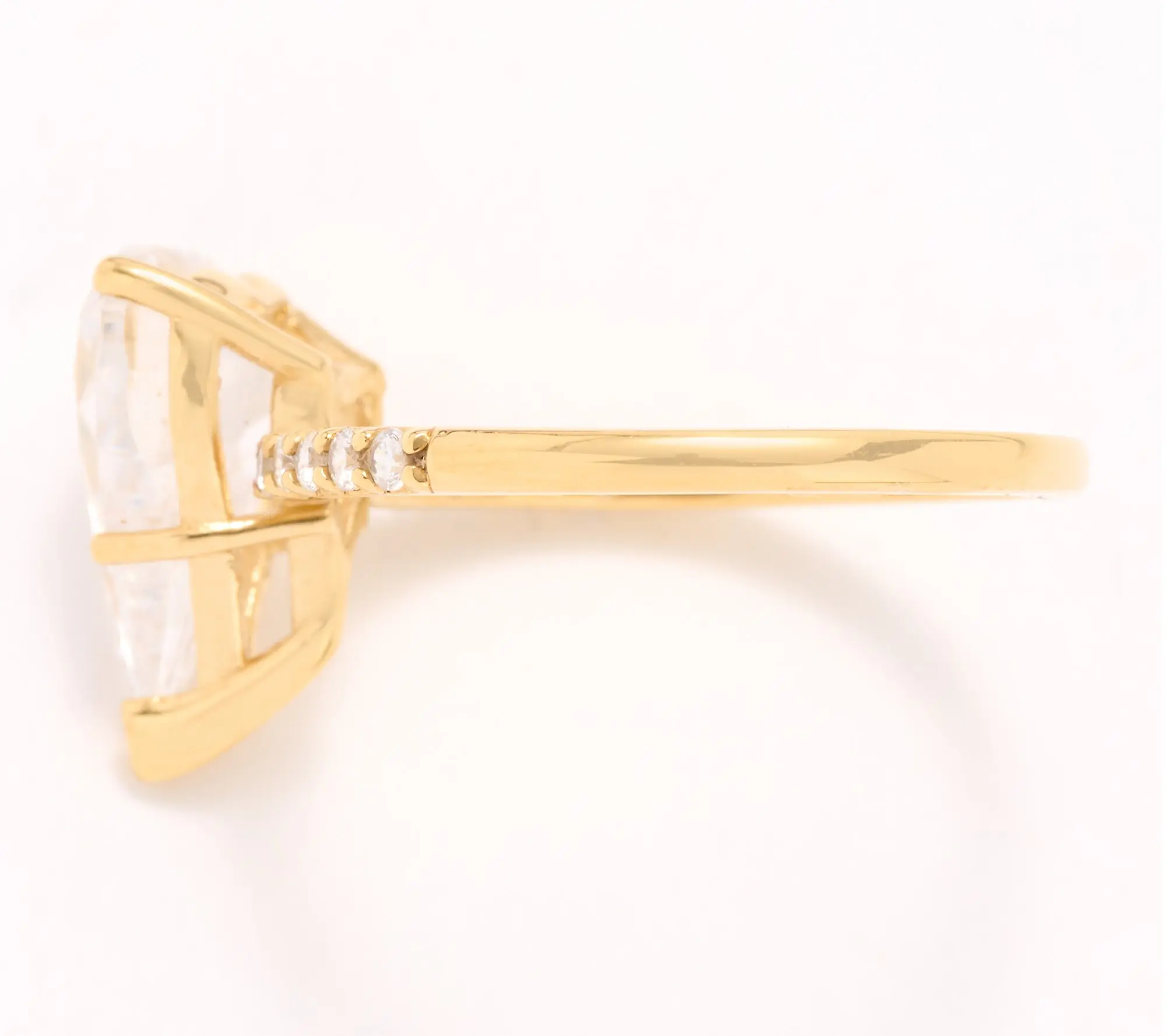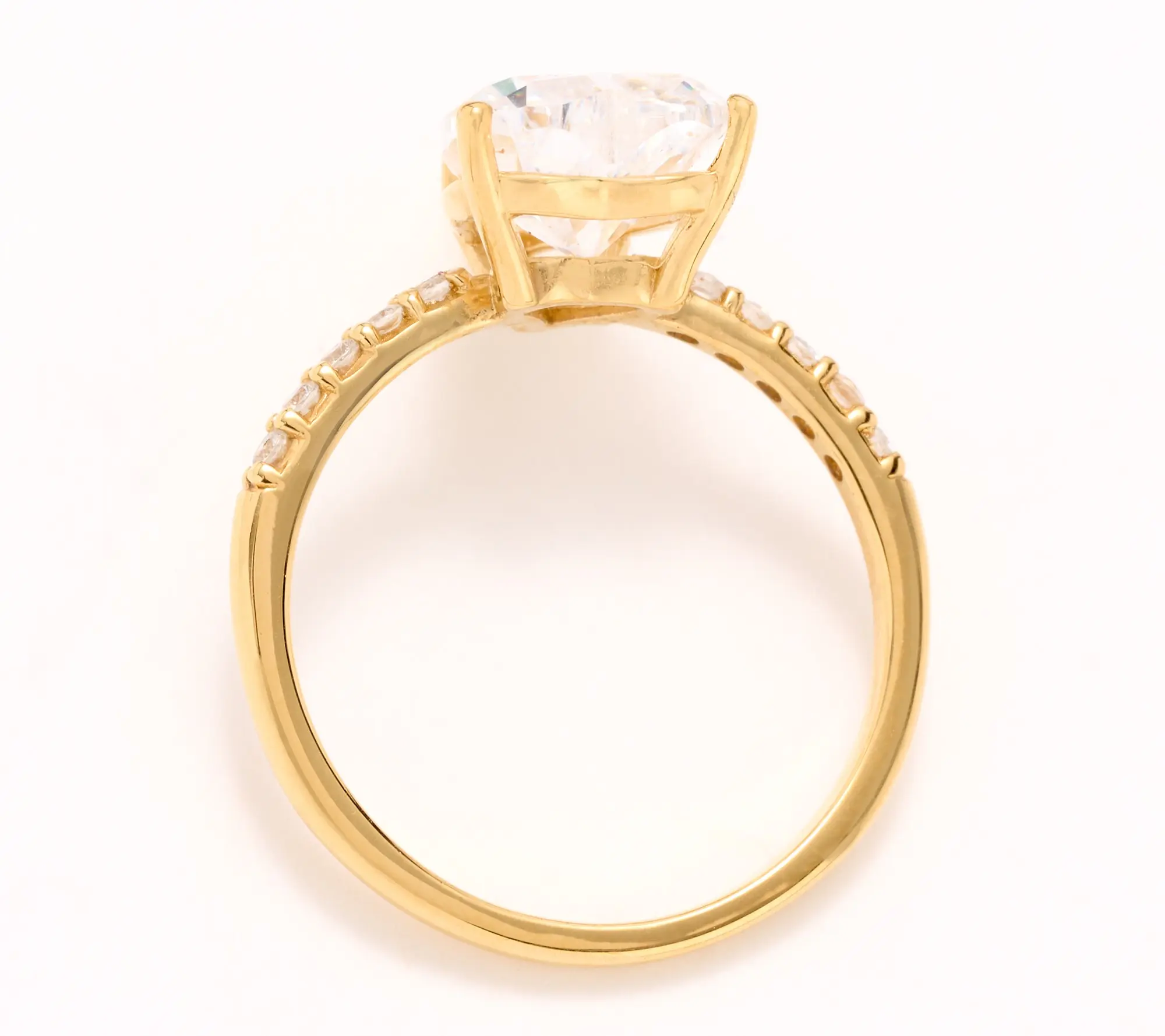 Round Diamonique simulated diamonds on sides; specialty-cut, heart-shaped Diamonique simulated diamond in center; polished finish