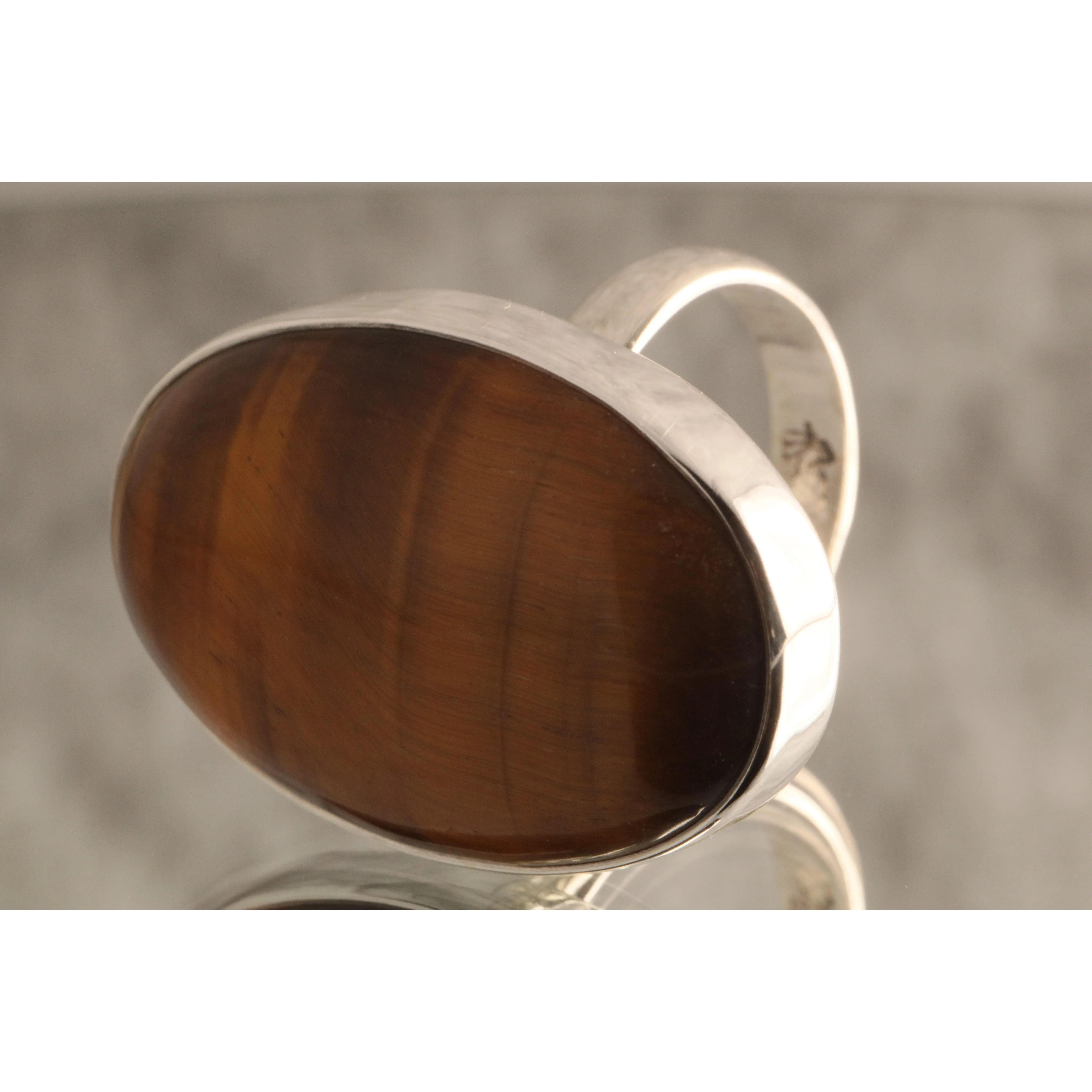 The intricate band and setting, forged in Taxco’s heart, are meant to frame the natural beauty of the tiger’s eye, making this ring a harmonious blend of elegance and strength. Each stone carries unique patterns and colors, reflecting the natural artistry of the earth.