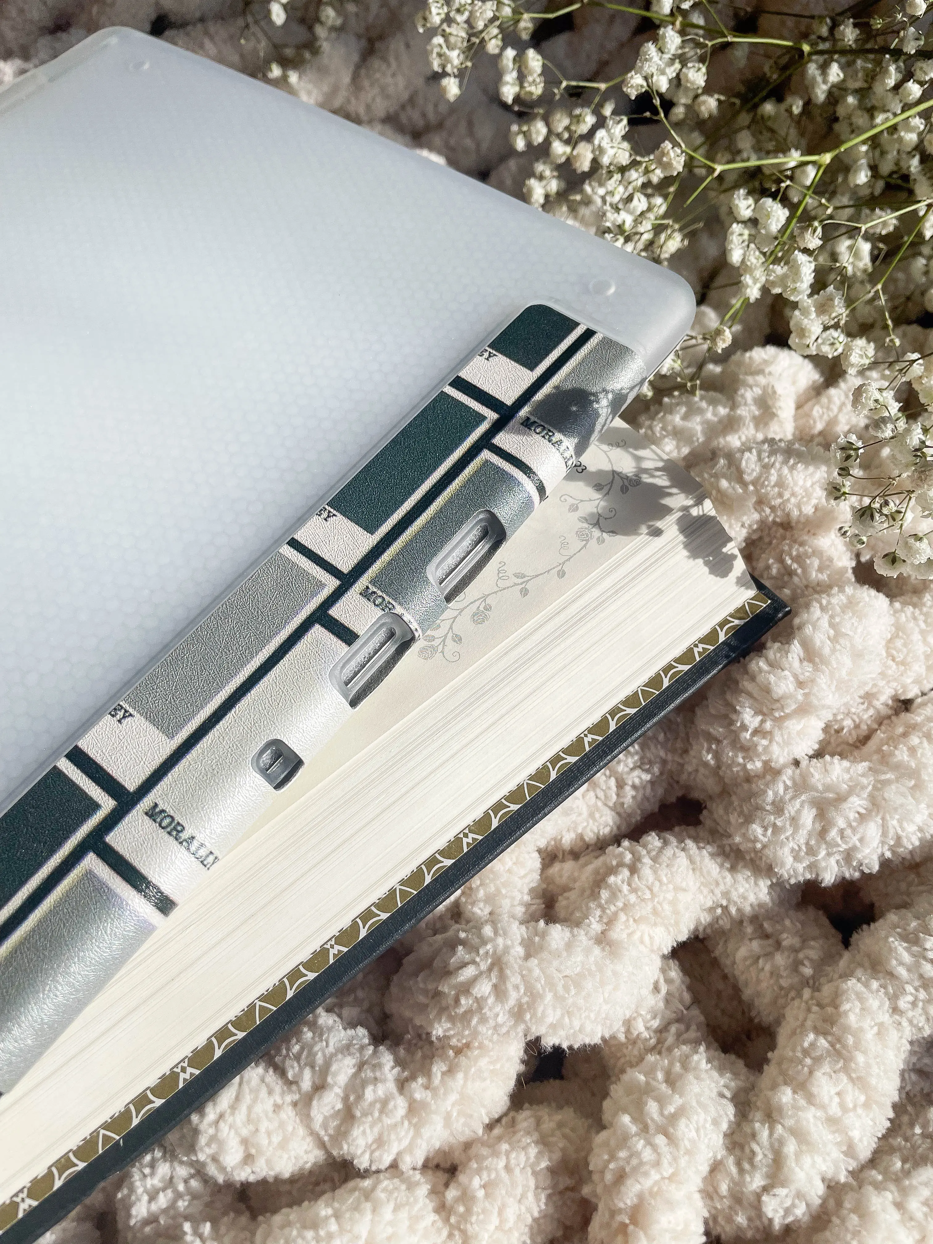 ✨ Vegan Leather outside with a microsuede inside lining on inside front cover