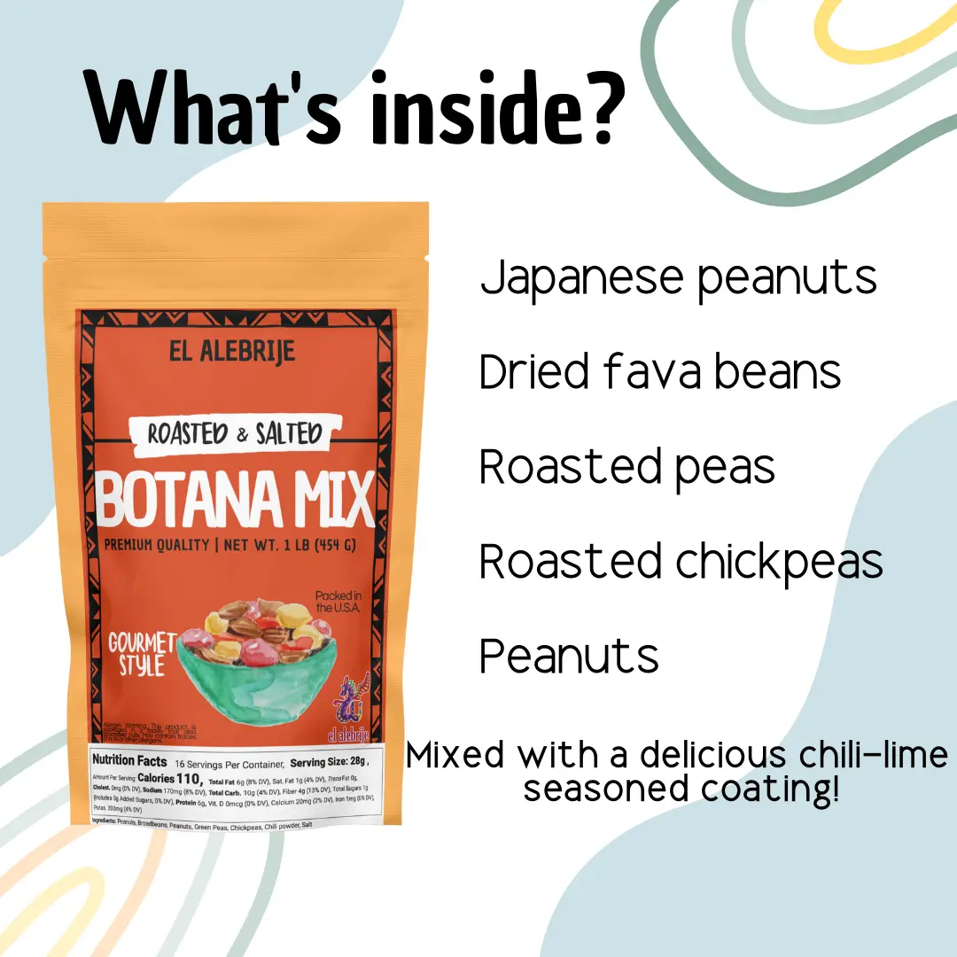 Indulge in the delicious and protein-rich El Alebrije Botana Mix and enjoy a snack that combines a variety of flavors for a satisfying treat.