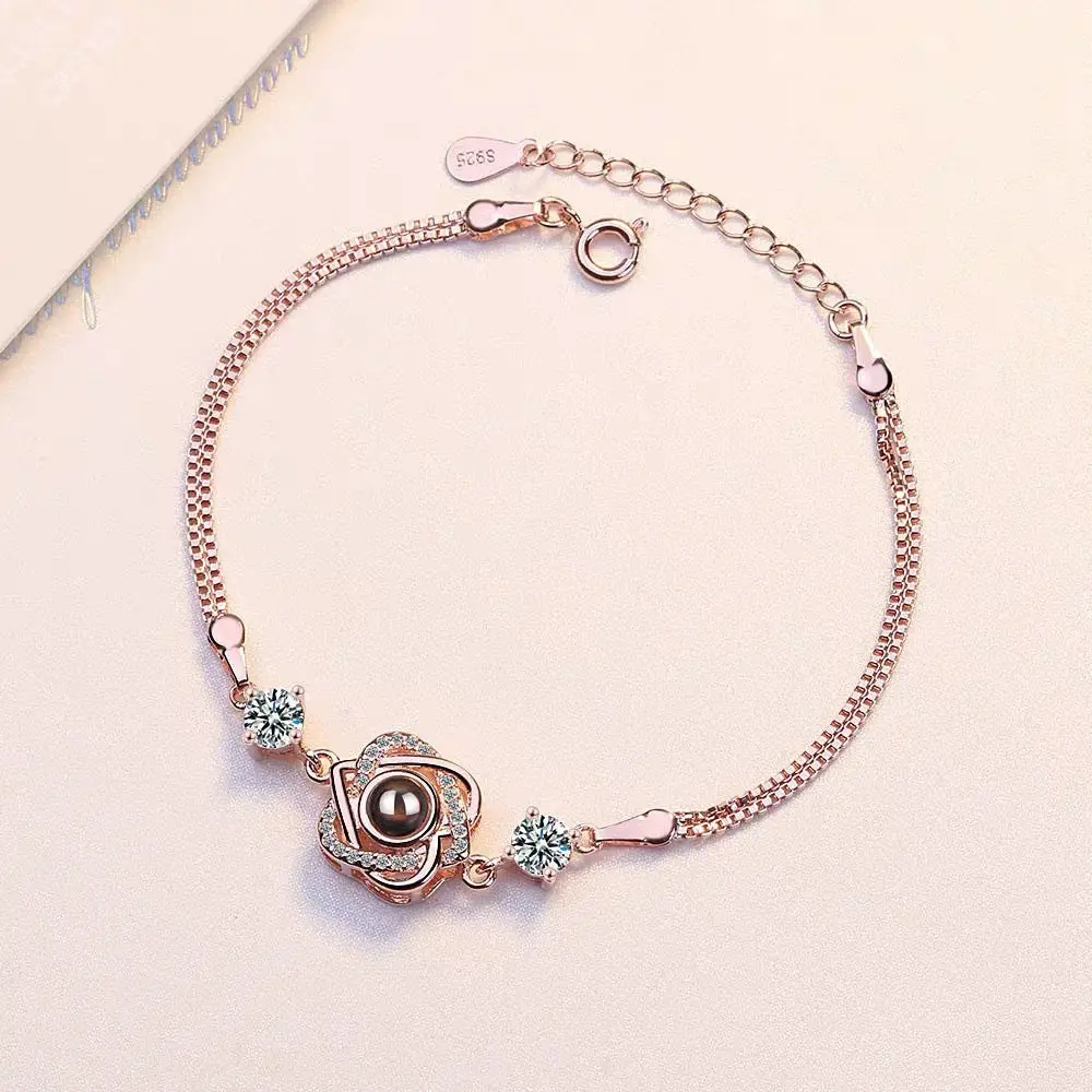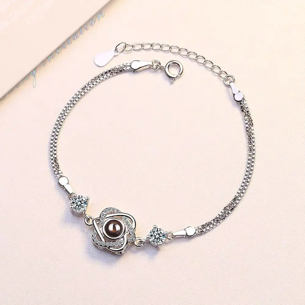 Customized color photo projection s925 pure silver six pointed star bracelet with 100 languages for birthday commemoration
