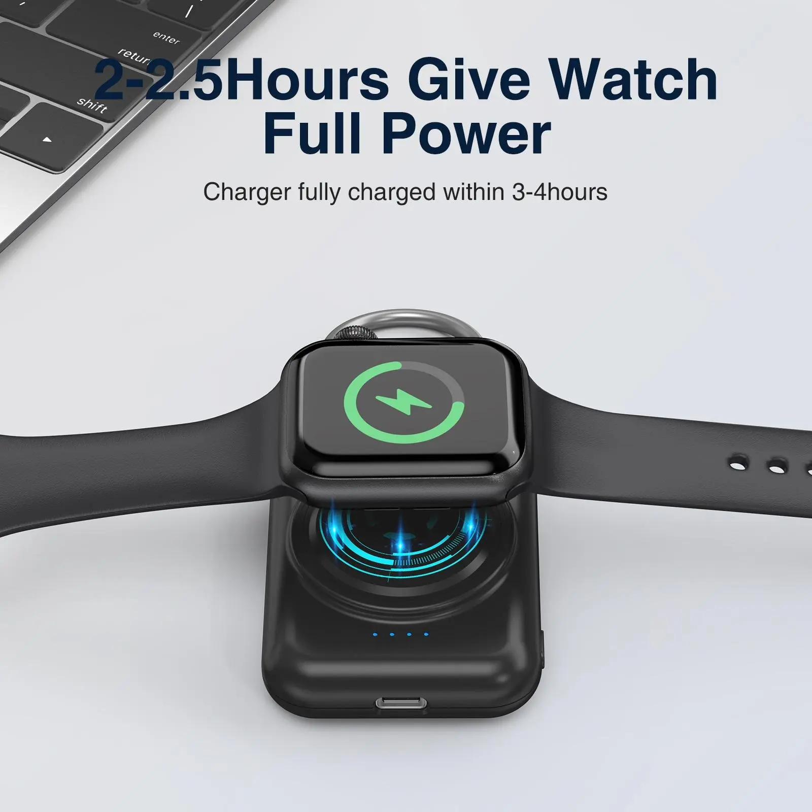 1800mAh Portable Wireless Charger for iwatch Smartwatch - USB Type C Magnetic Charging Dock with Quick-Charging Watch Wireless charger - Compact Travel Accessory