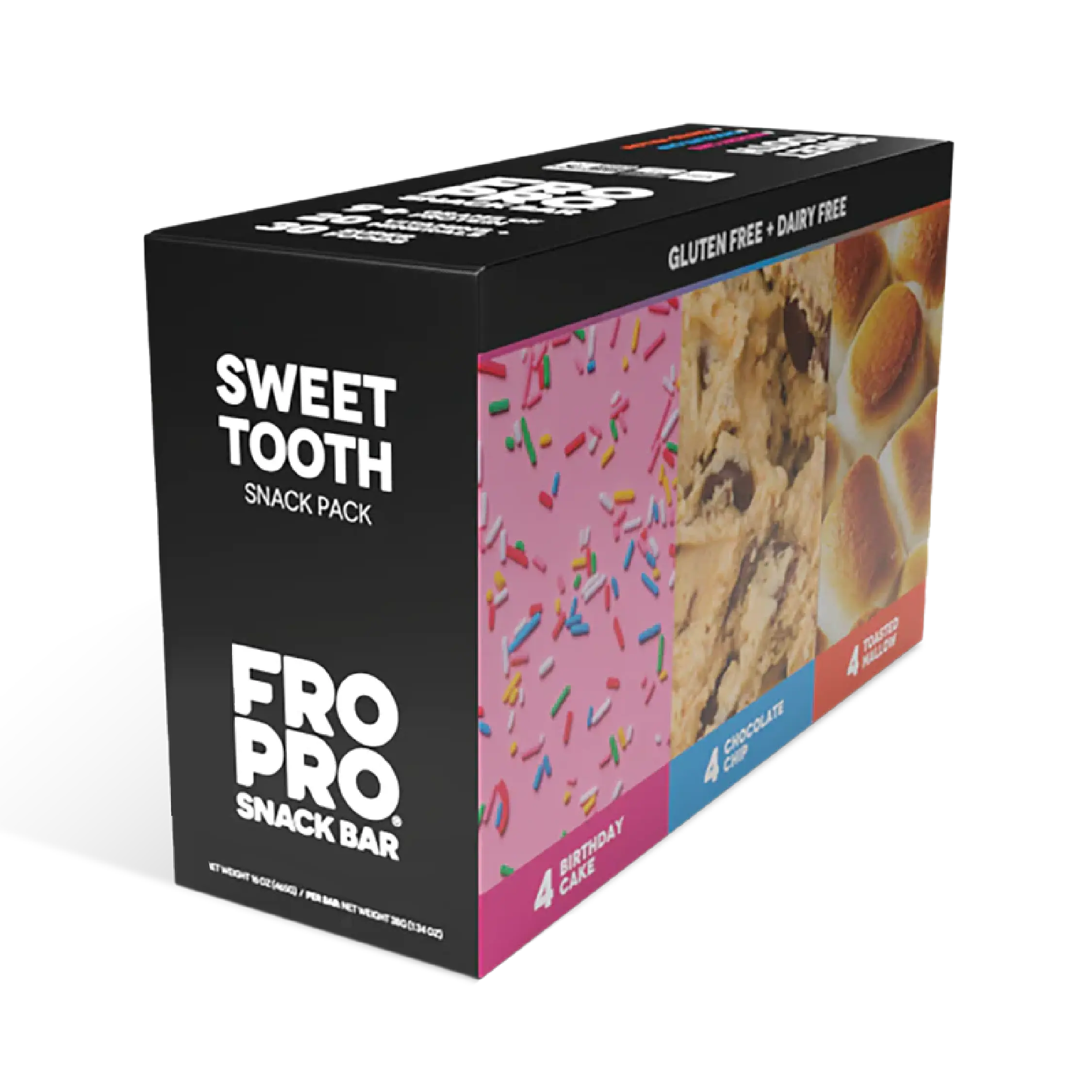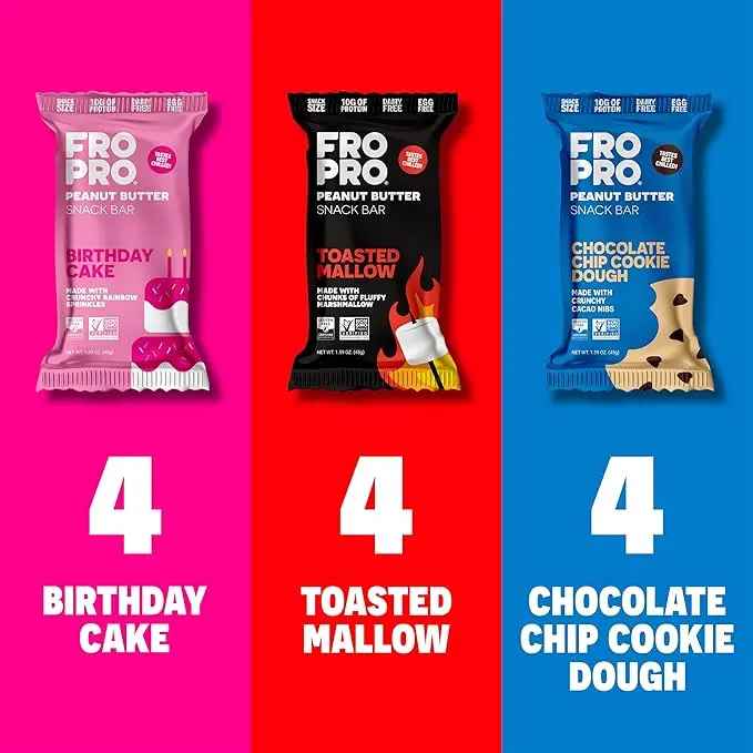 Enjoy a variety of flavors with our Sweet Tooth Variety 12 Pack of FROPRO Peanut Butter Snack Bars!