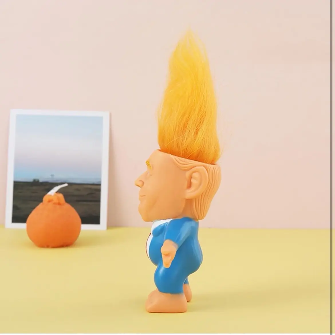 This troll doll is a playful representation of President Trump, making it a