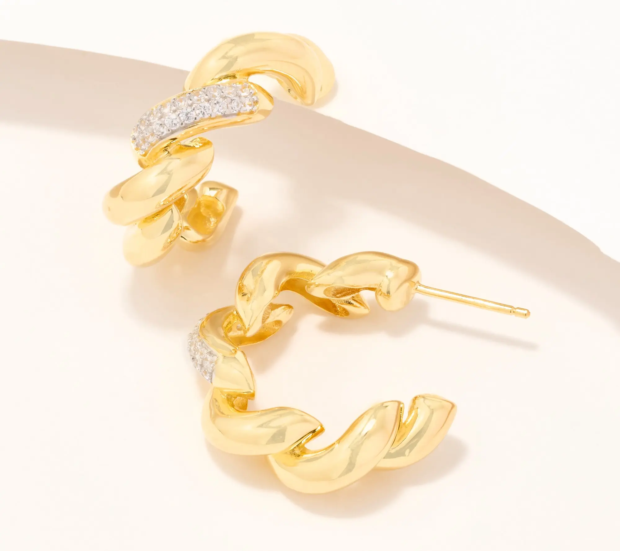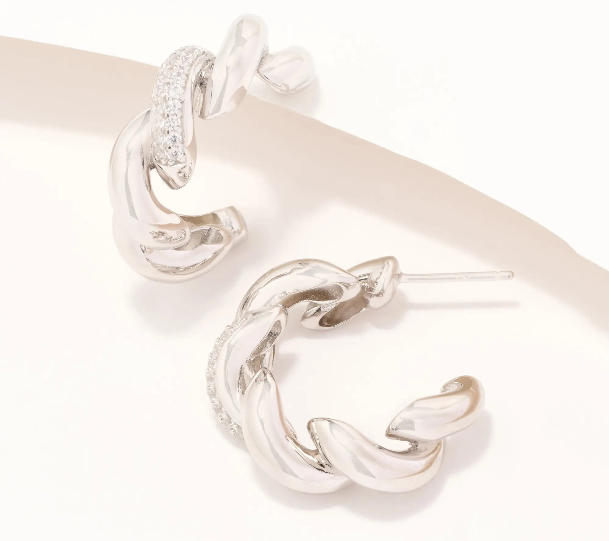 ·San Marco-style hoop with pave-set, round Diamonique simulated diamonds; left and right design; polished finish