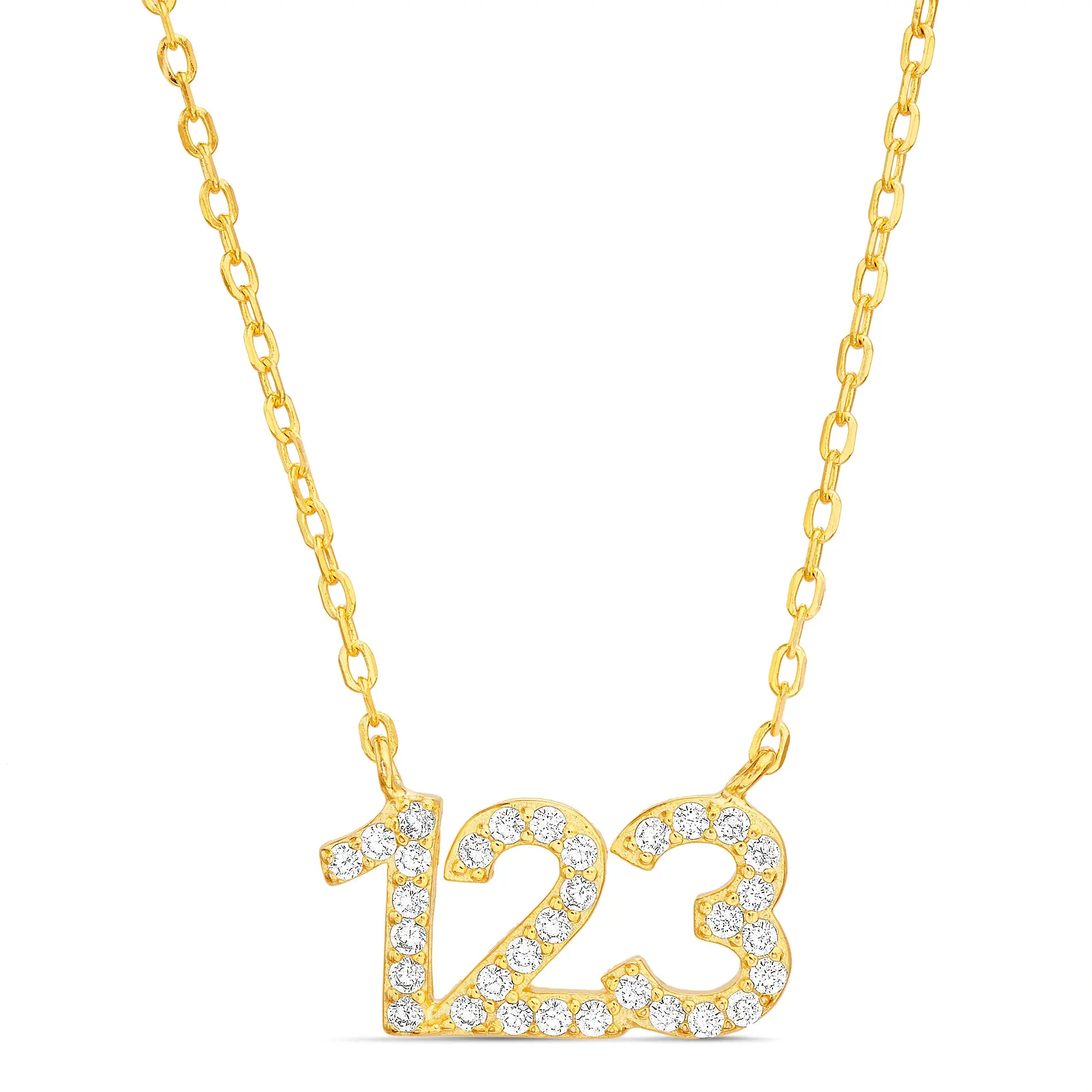 Discover the charm of the Sterling Silver Angel Number Necklace featuring number sequence 123. Finished with a sleek Yellow Gold plating and CZ stones, this elegant item is perfect for enhancing any outfit.
