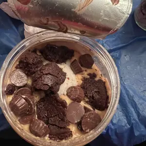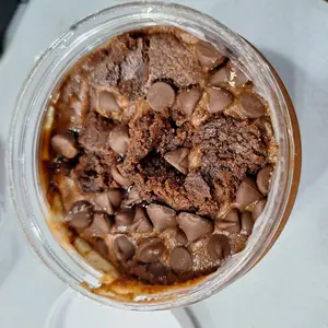 Boujee Brownie starts with sweet dark chocolate peanut butter layered on chocolate sauce, caramel sauce, and caramel bits. We top it with chocolate chips and brownie centers! No need to wait for these to cool, grab a spoon and dig in!