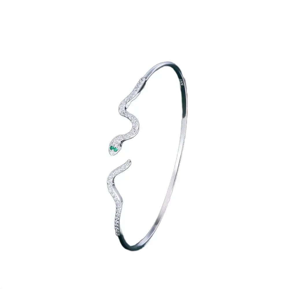 925 Sterling Silver Cubic Zirconia Snake Shape Bangle Bracelet - Elegant Design with Unique Shape and Color