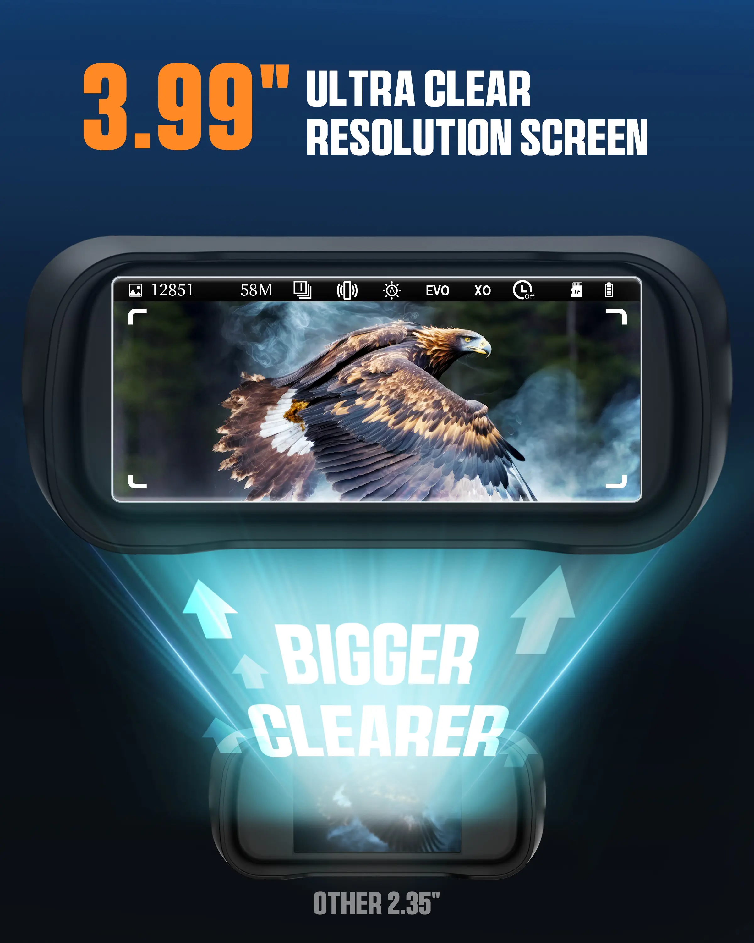 The CNV01 night vision goggles are equipped with a starlight sensor and a powerful infrared spotlight to provide a clear field of view even in low light conditions. With the largest 3.99-inch HD display on the market and an excellent f/1.0 aperture, it ensures unparalleled light intake.