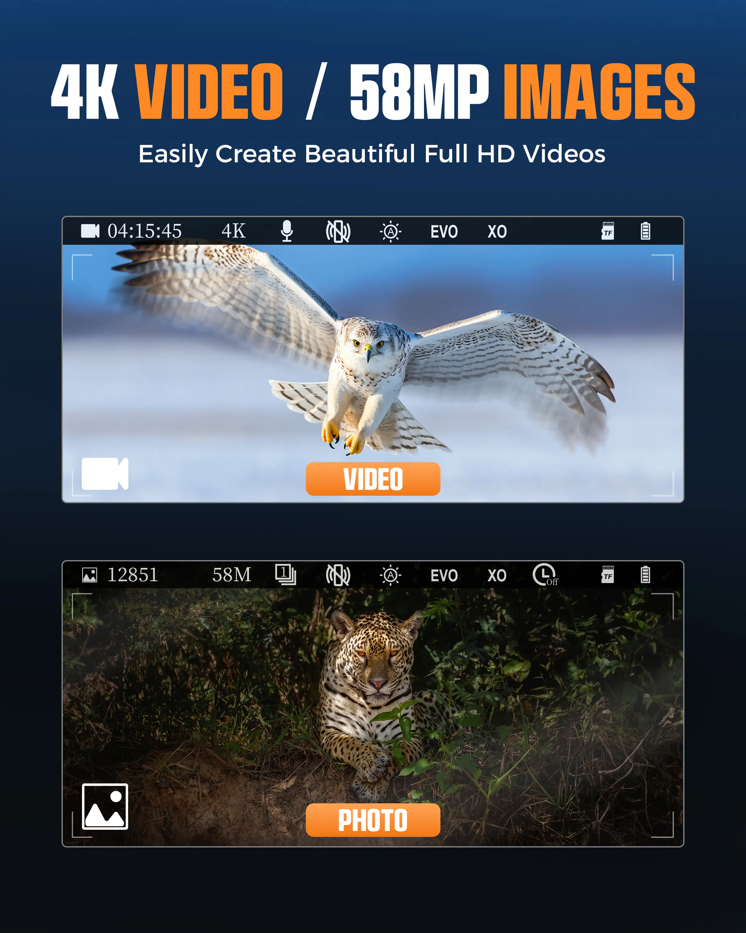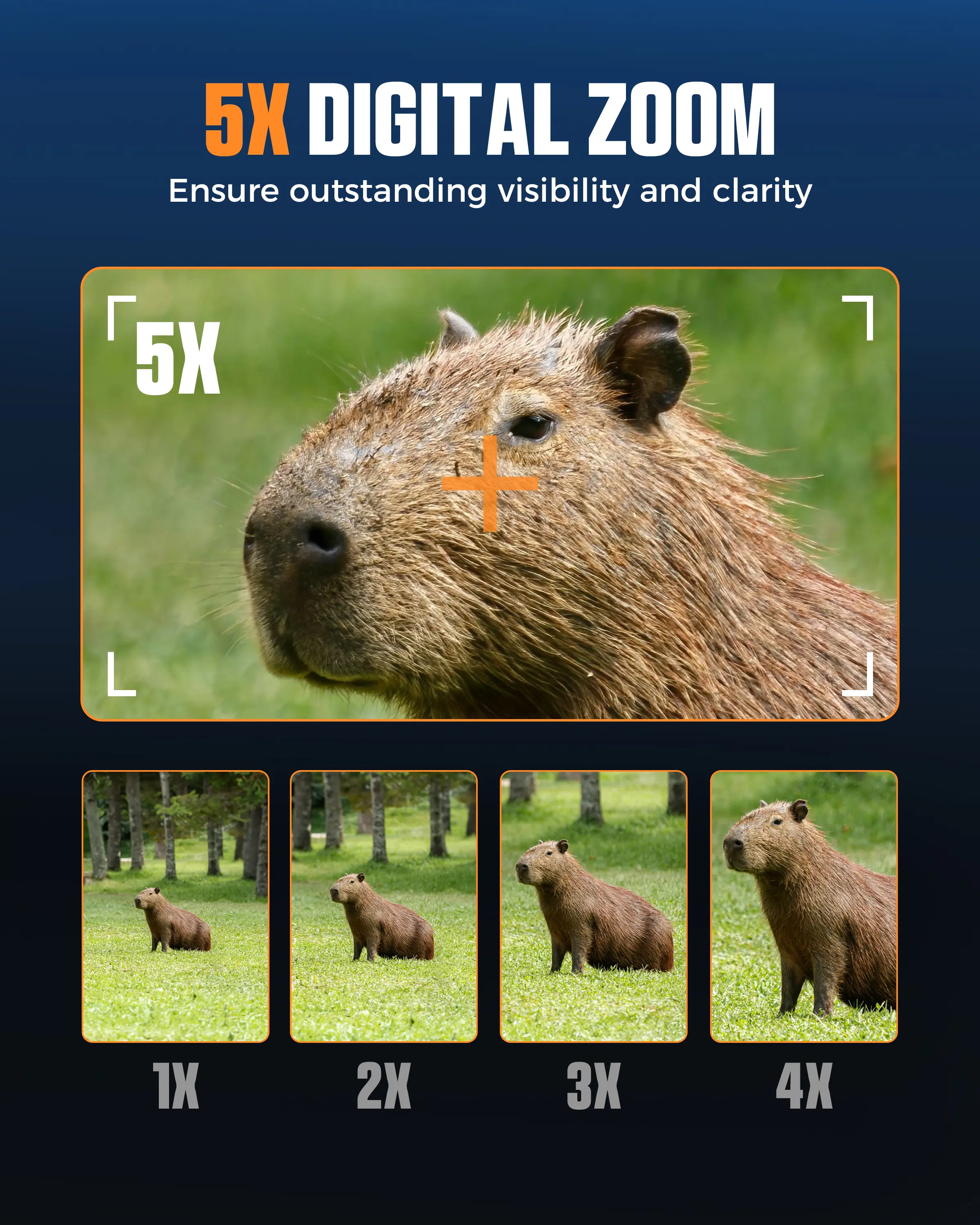 Capture clear, detailed images with a 58MP photo sensor capable of Full HD resolution during both day and night. Flexible video resolutions( 4K1080FHD,1080P,720P) cater to diverse practical requirements.The 5x digital zoom further enhances detail in both pictures and videos.