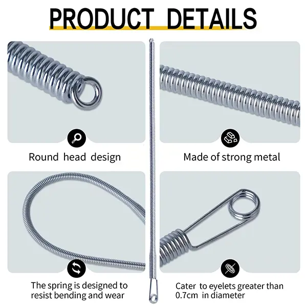 2.Material:Made of sturdy metal, the spring is designed to resist bending and wear.Its sturdy, smooth surface ensures it won’t break easily.