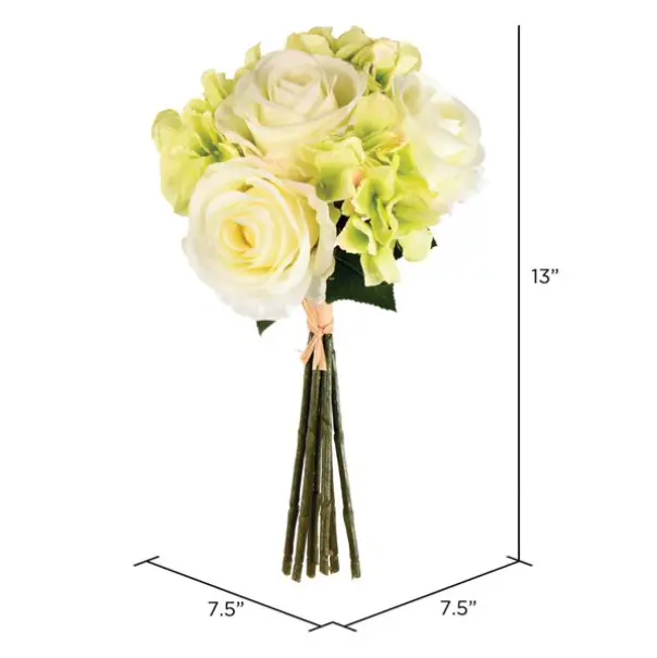 The 13" Artificial Green and Cream Rose Hydrangea Bouquet is a beautifully crafted floral arrangement made of high-quality artificial flowers. This set includes 2 bouquets, each featuring a mix of green and cream-colored roses paired with hydrangeas, offering a fresh and natural look that is perfect for various occasions. Whether for home décor, wedding centerpieces, events, or gift-giving, these artificial bouquets provide the beauty of real flowers without the maintenance. Ideal for both casual and elegant settings, this bouquet brings a touch of charm and elegance to any room or celebration.
