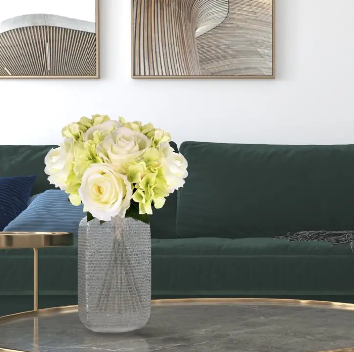 ·Flower Types:Green and cream-colored roses (usually 4-5 roses per bouquet).Hydrangea flowers (usually 2-3 hydrangea blooms per bouquet).The combination of roses and hydrangeas creates a balanced, lush, and elegant bouquet.