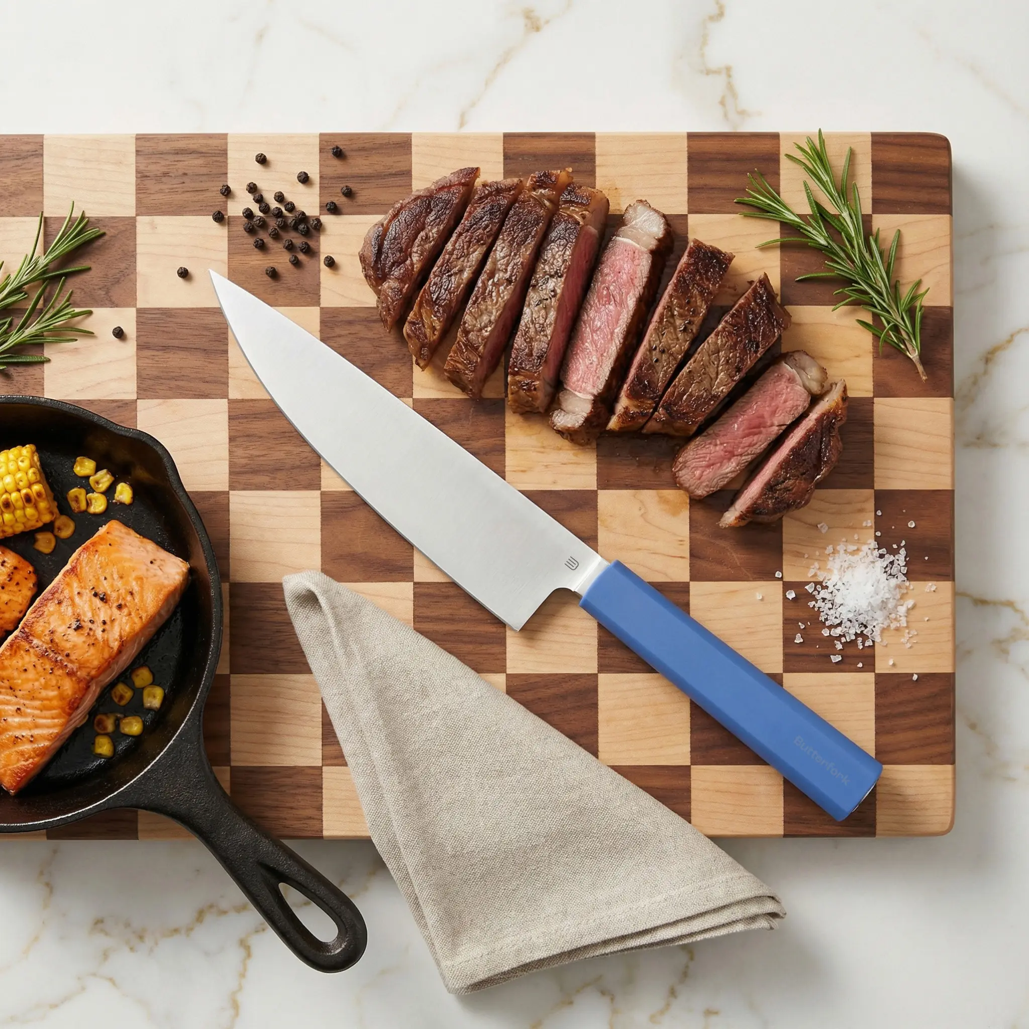 We partnered with top chefs, designers, and blade manufacturers to craft a thoughtfully designed kitchen knife. The result: a sharp, thin, durable blade blending cutting-edge technology, ergonomic design, and traditional craftsmanship.