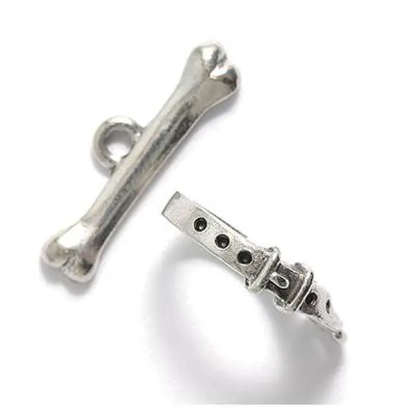 Toggle Clasp Dog Collar/ Bone Antiqued Pewter 20mm -