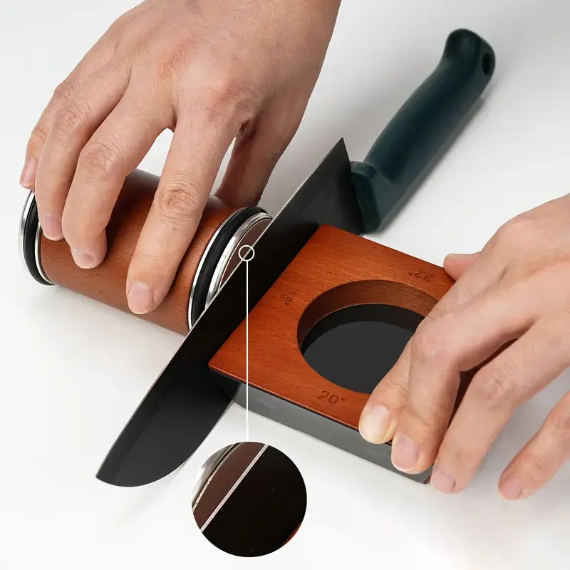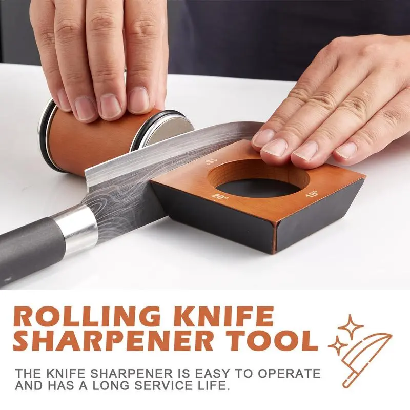 Rolling Knife Sharpener , Select Tool Knife Sharpener for Kitchen, Wooden Knife Sharpening Kit with Strong Magnetic Angle