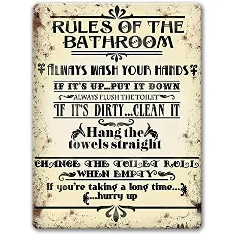 Bathroom Rules Sign, Farmhouse Bathroom Decor Wall Art Vintage Metal Tin Signs Funny 12 x 8 inches