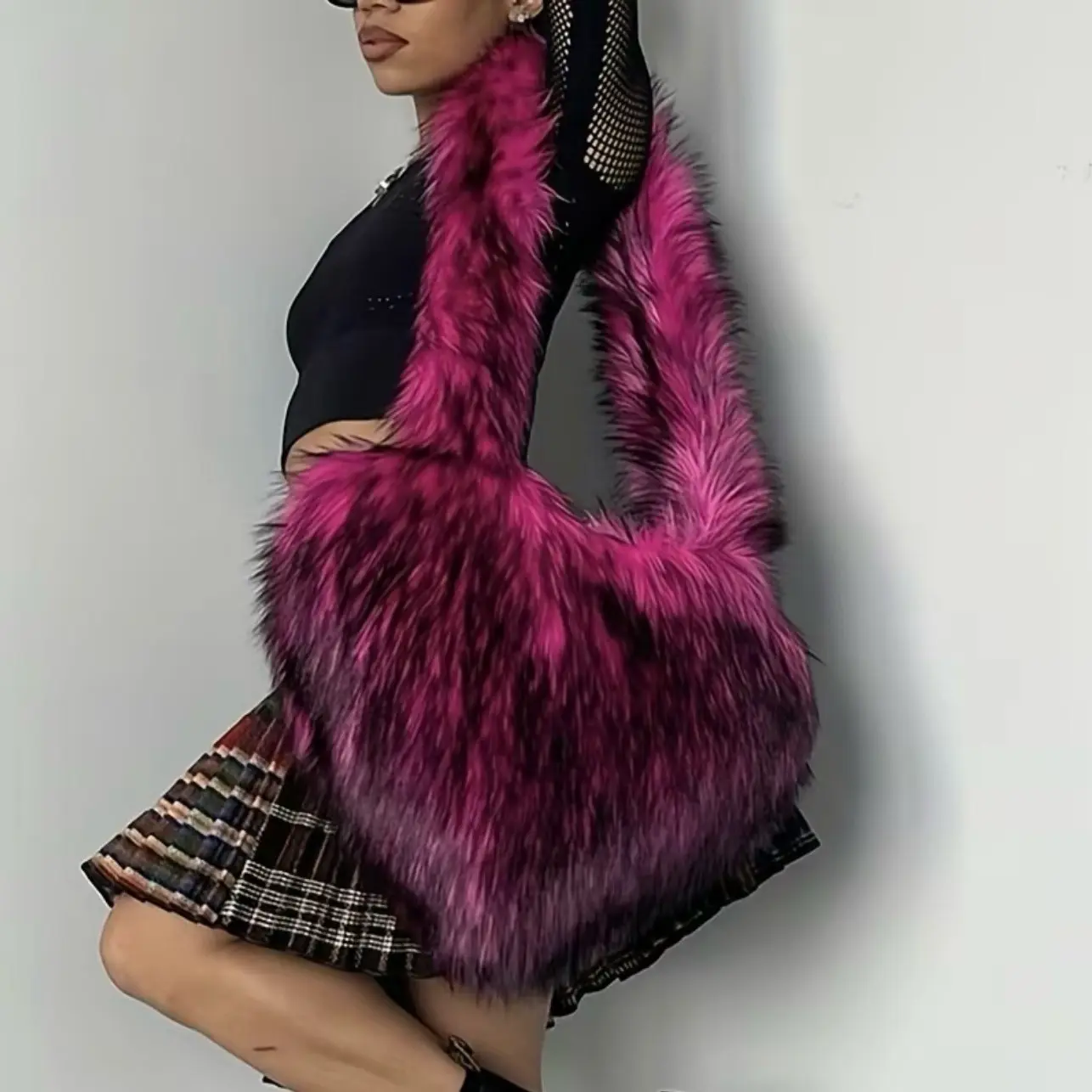 fluffy heart shaped crossbody bag