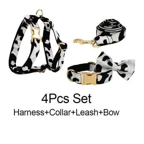 Designer Personalized Luxury Tactical Dog Collars Cow Print Pet Set Dog Harness And Leash Set