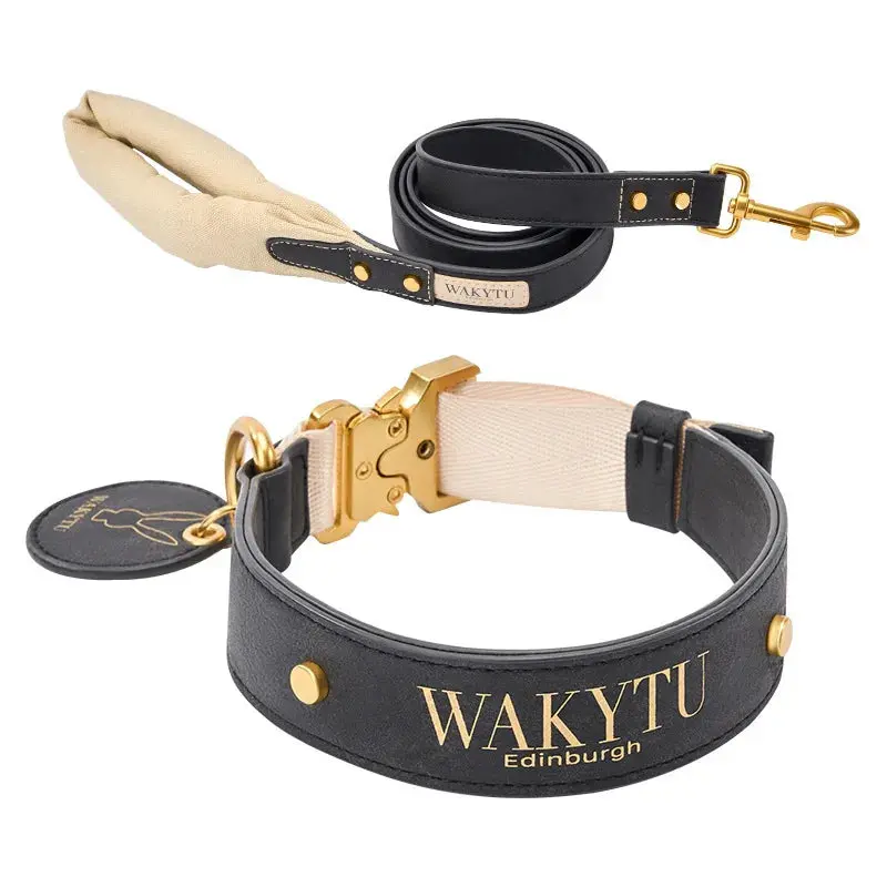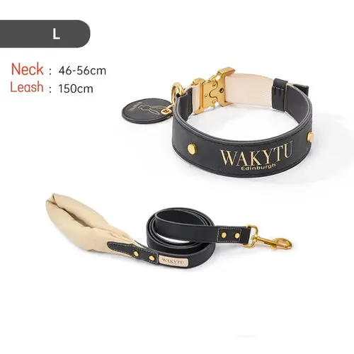 Luxury Leather Dog Collar & Leash with Padded Handle