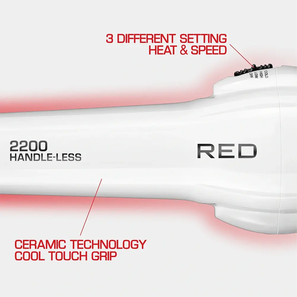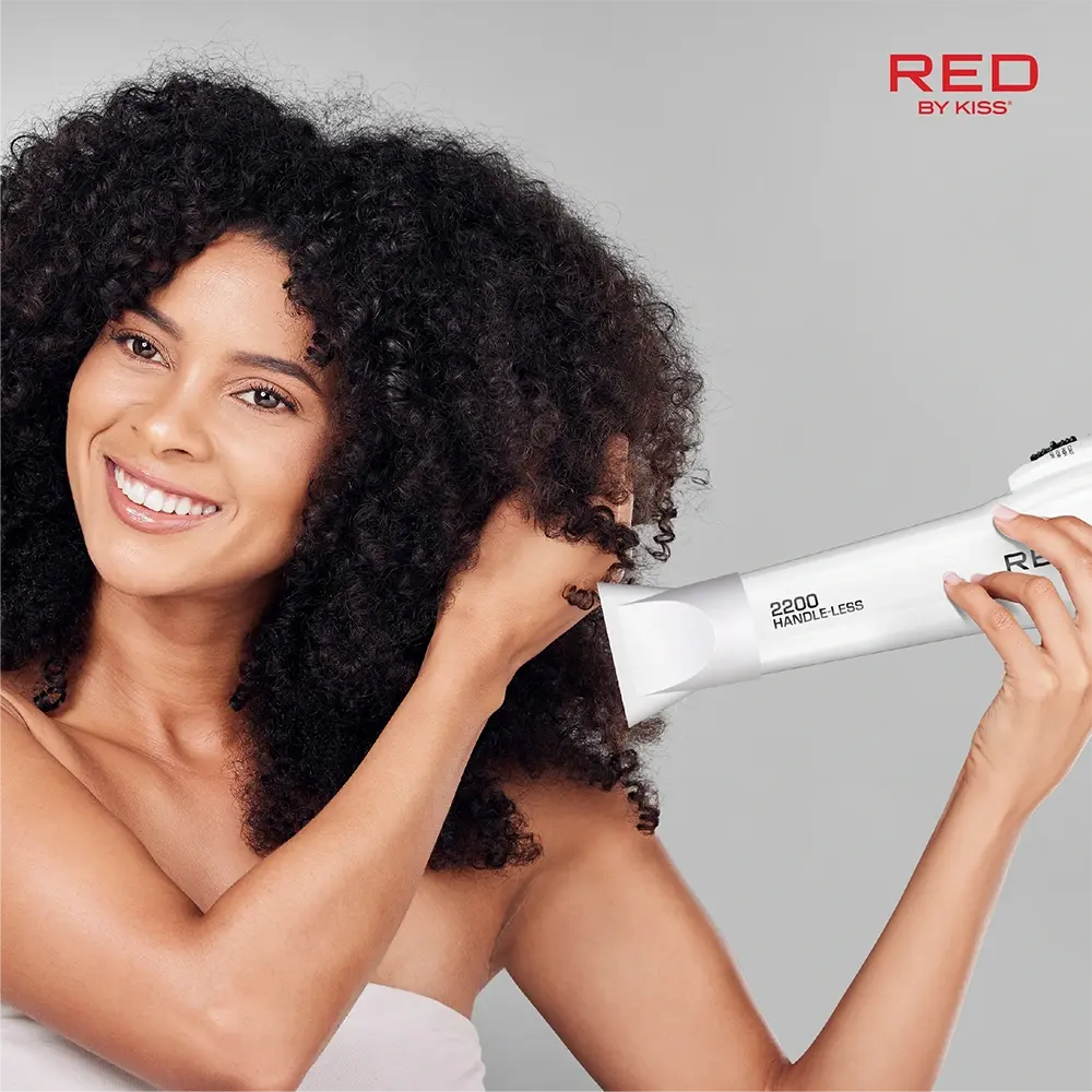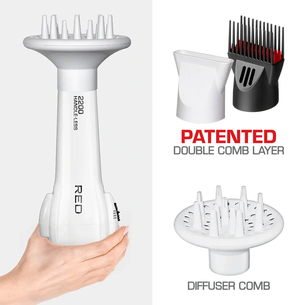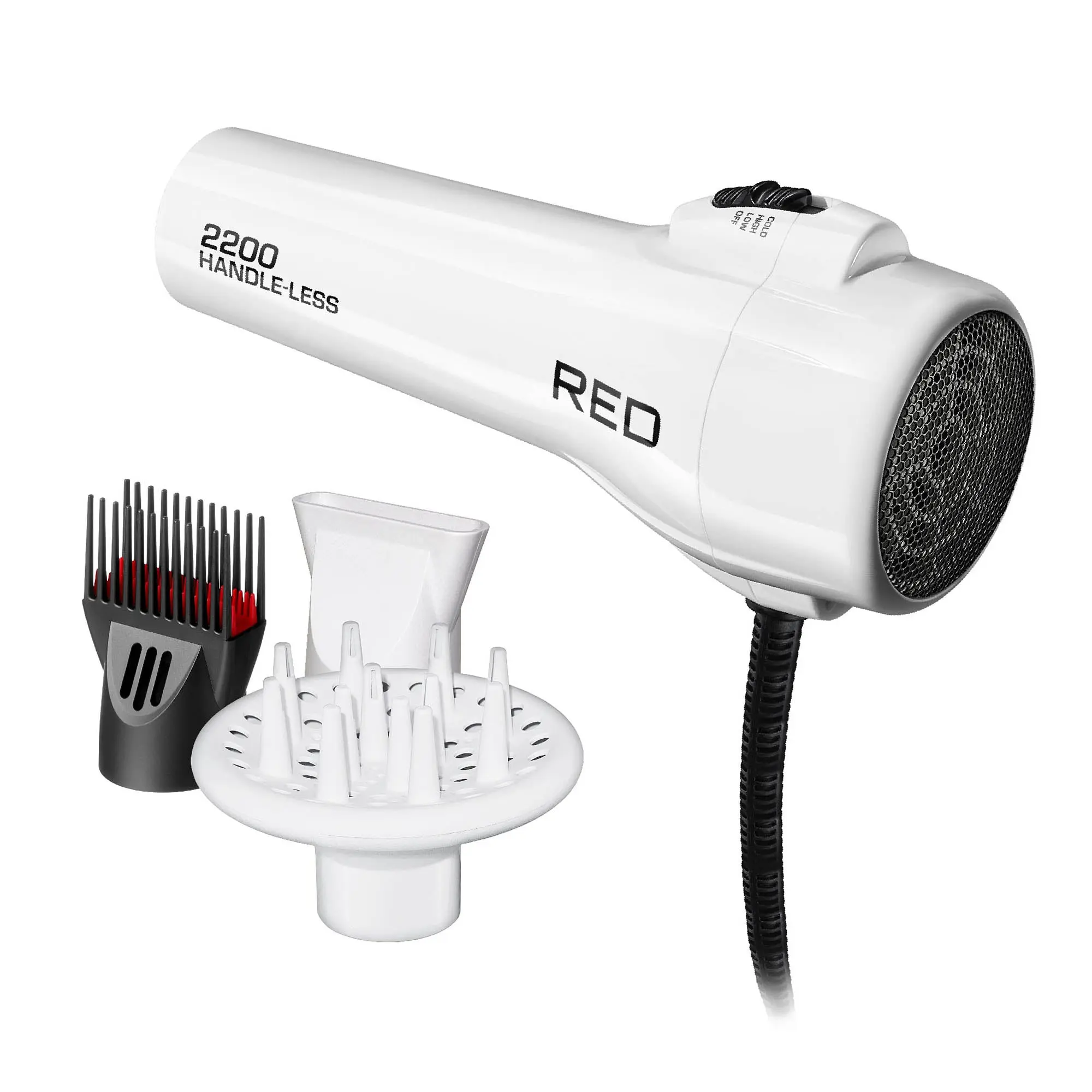 This handle-less blow drying is amazing it comes with three different attachments and they fit and work properly . It stretch and dried my hair so good . I was skeptical about getting a handle-less blow dryer but it didn’t burn my hand at all .