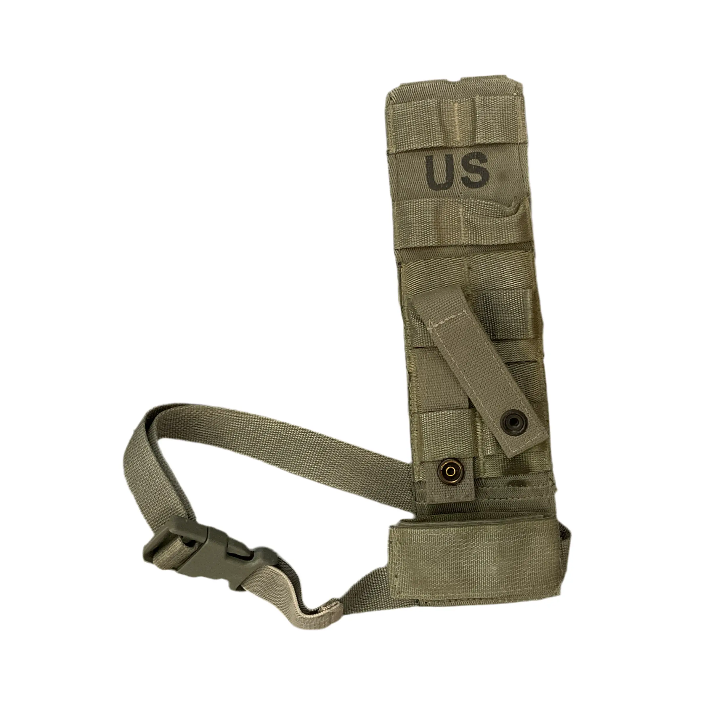 Get your holster off your belt by attaching it to this MOLLE Holster/Leg Extender. Super adjustable to get a more comfortable holster fit and lower draw. Olive. Used