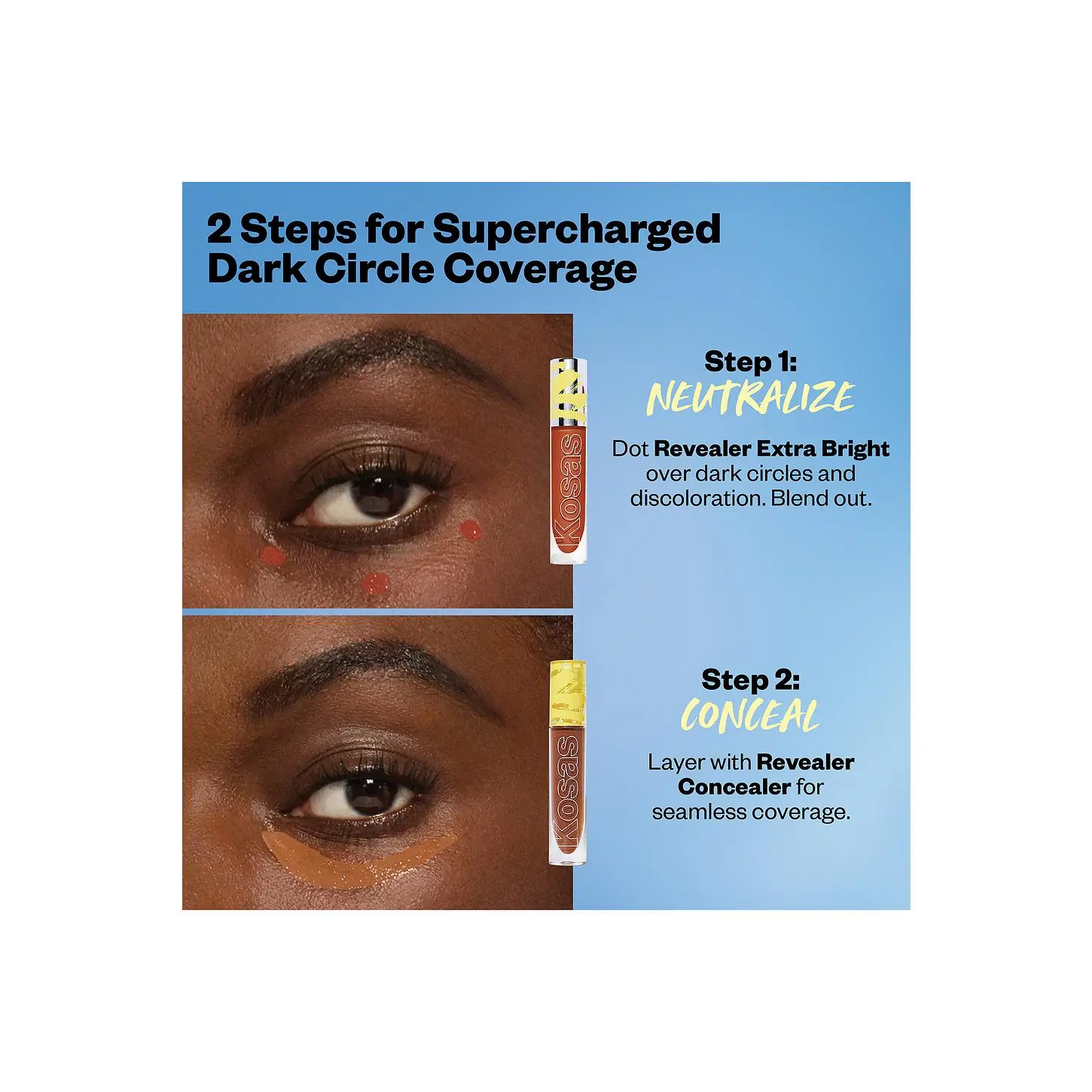 ·Step 1: Neutralize Dot Revealer Extra Bright over dark circles and discoloration