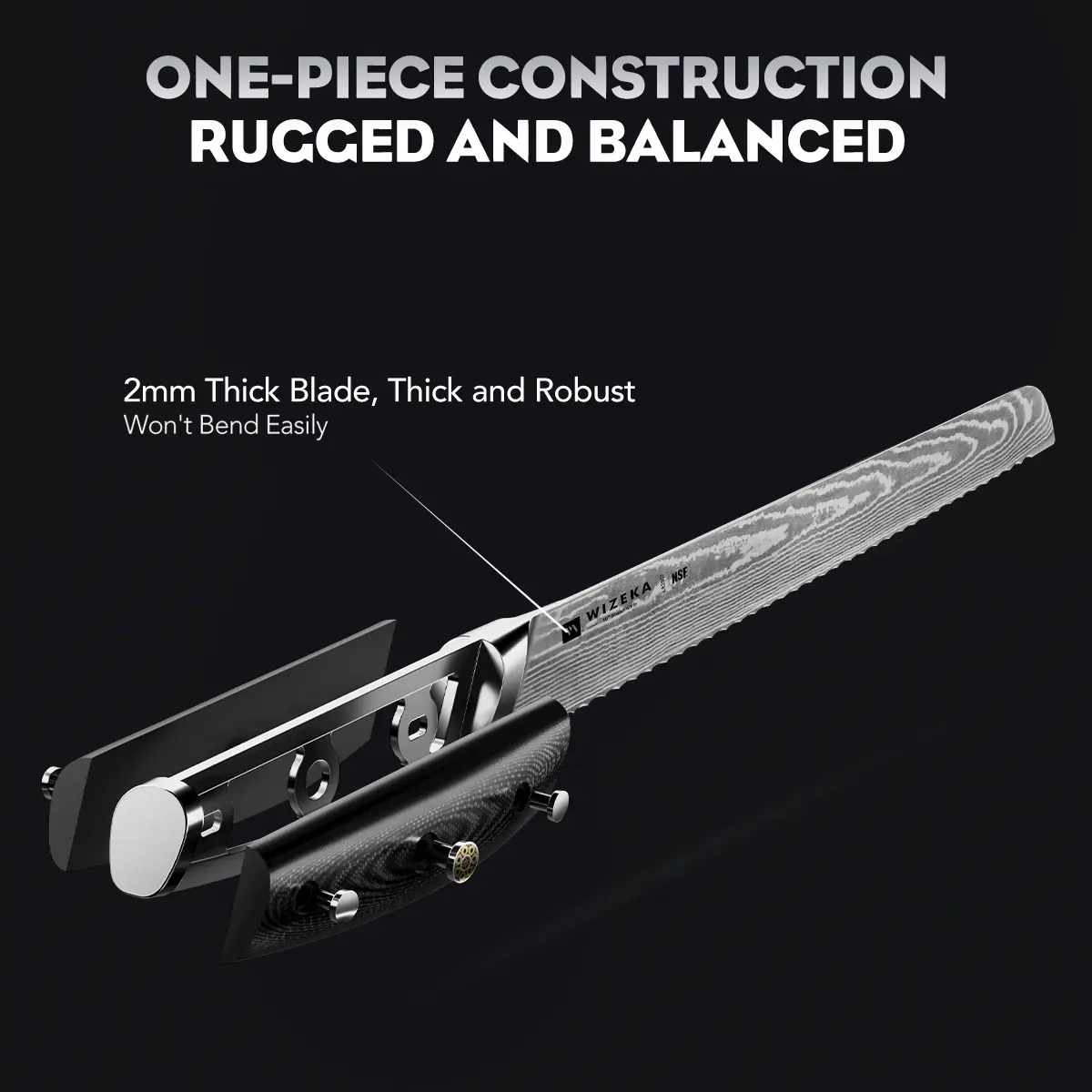 ·10-inch long blade can support cutting most large breads. The blade width is 2 mm and weighs 260g. It has sufficient weight and balanced distribution, is not easy to bend, and the slices are stable and accurate to prevent deviation.