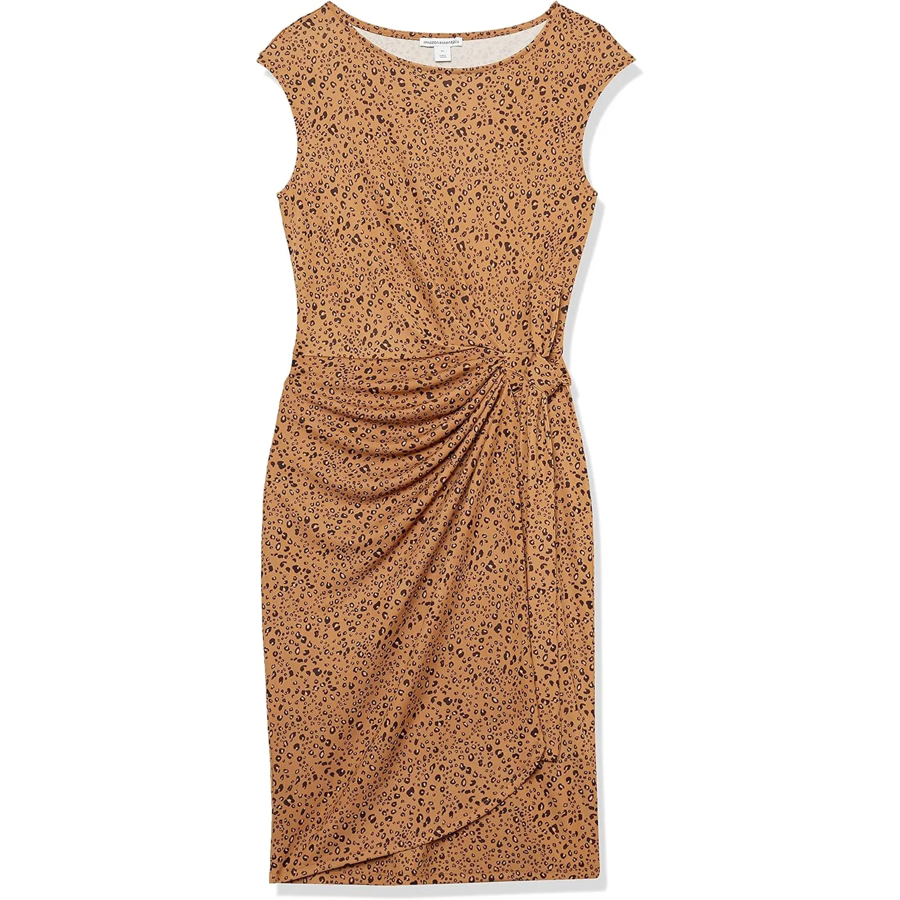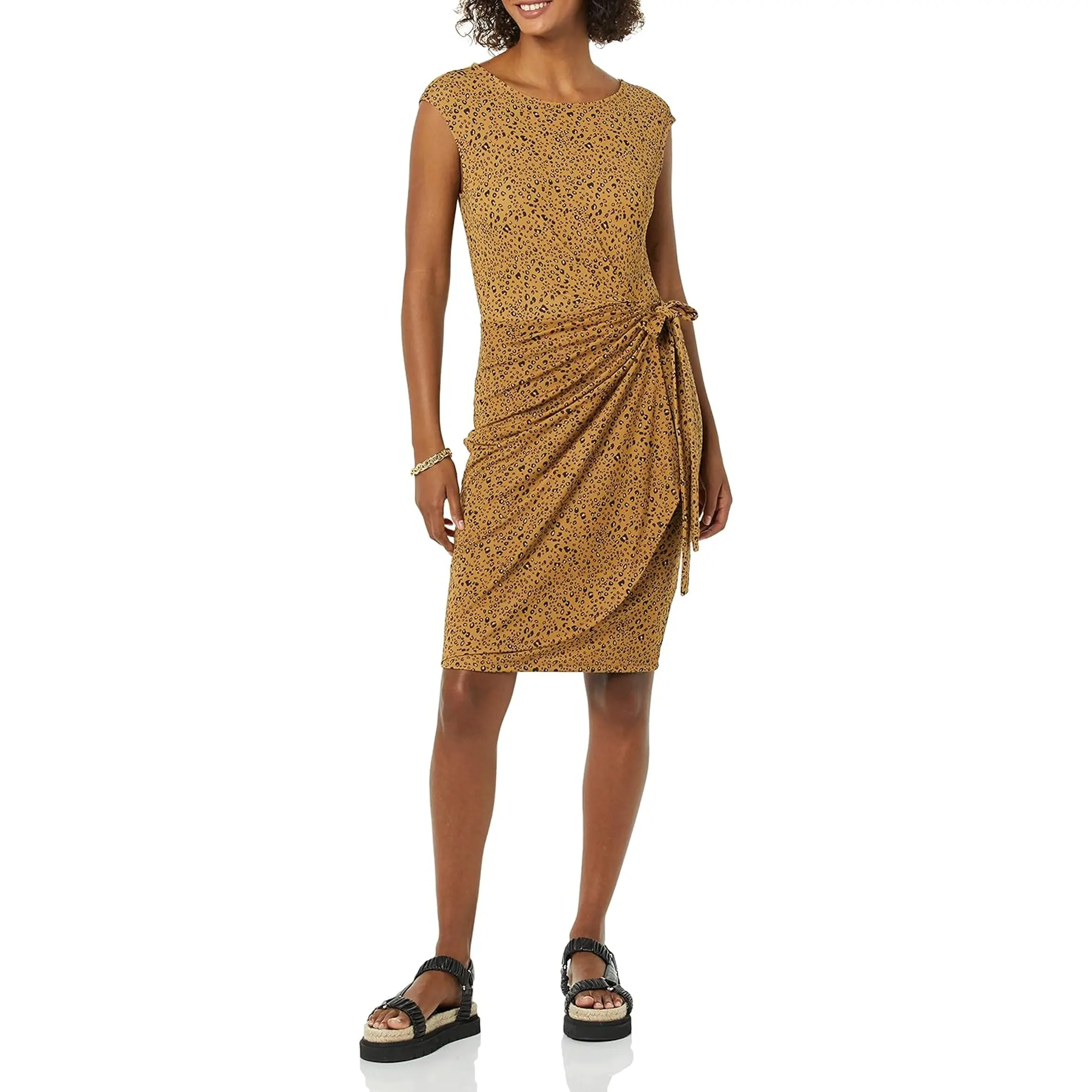 Women'S Cap Sleeve Boat-Neck Faux Wrap Dress Womenswear Elegant Comfort Style Formal Casual Chic Day