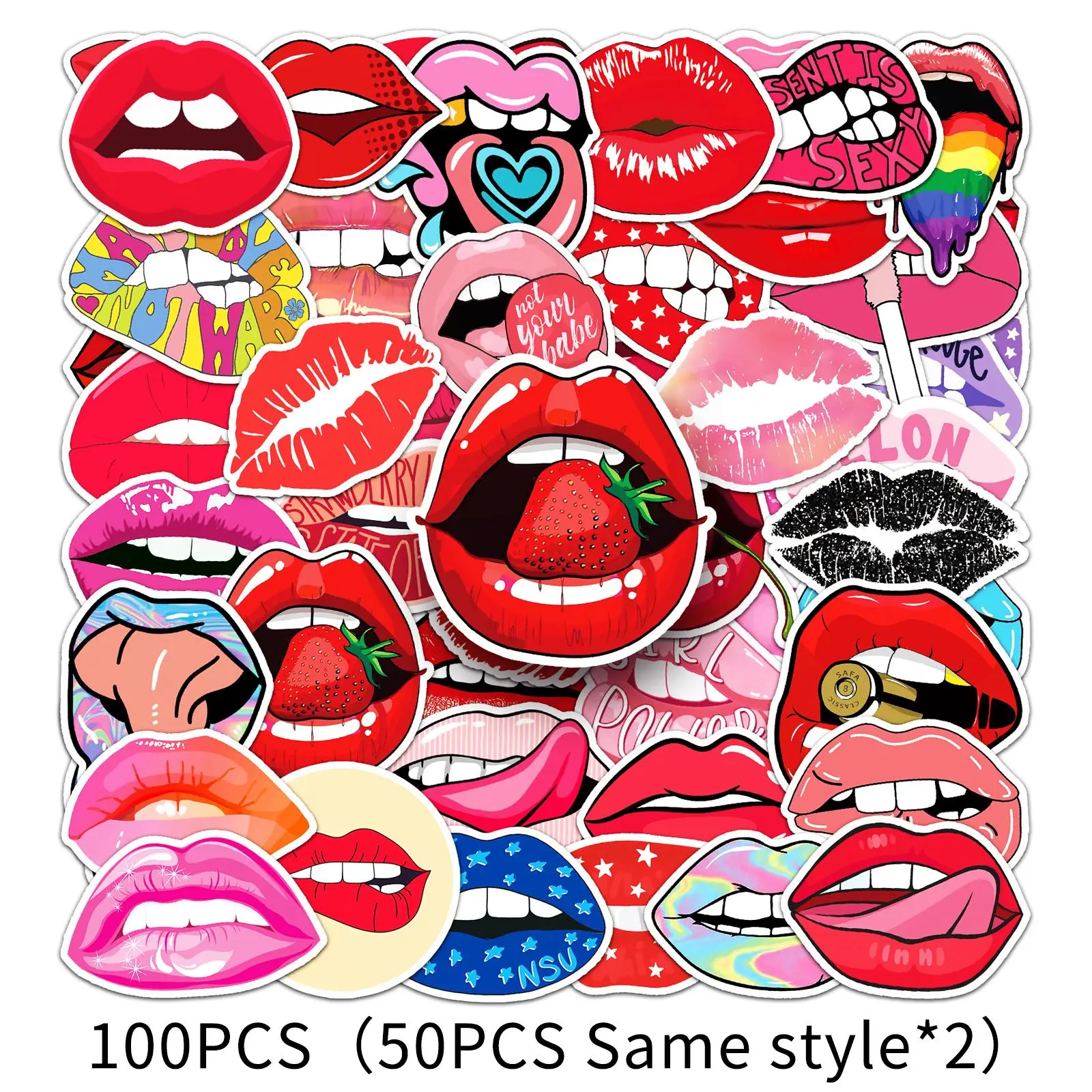 Lip Pattern Sticker, 100pcs/set Creative Lip Design Sticker, DIY Decorative Sticker for Scrapbooking, Journaling, Gift Wrapping, Decal