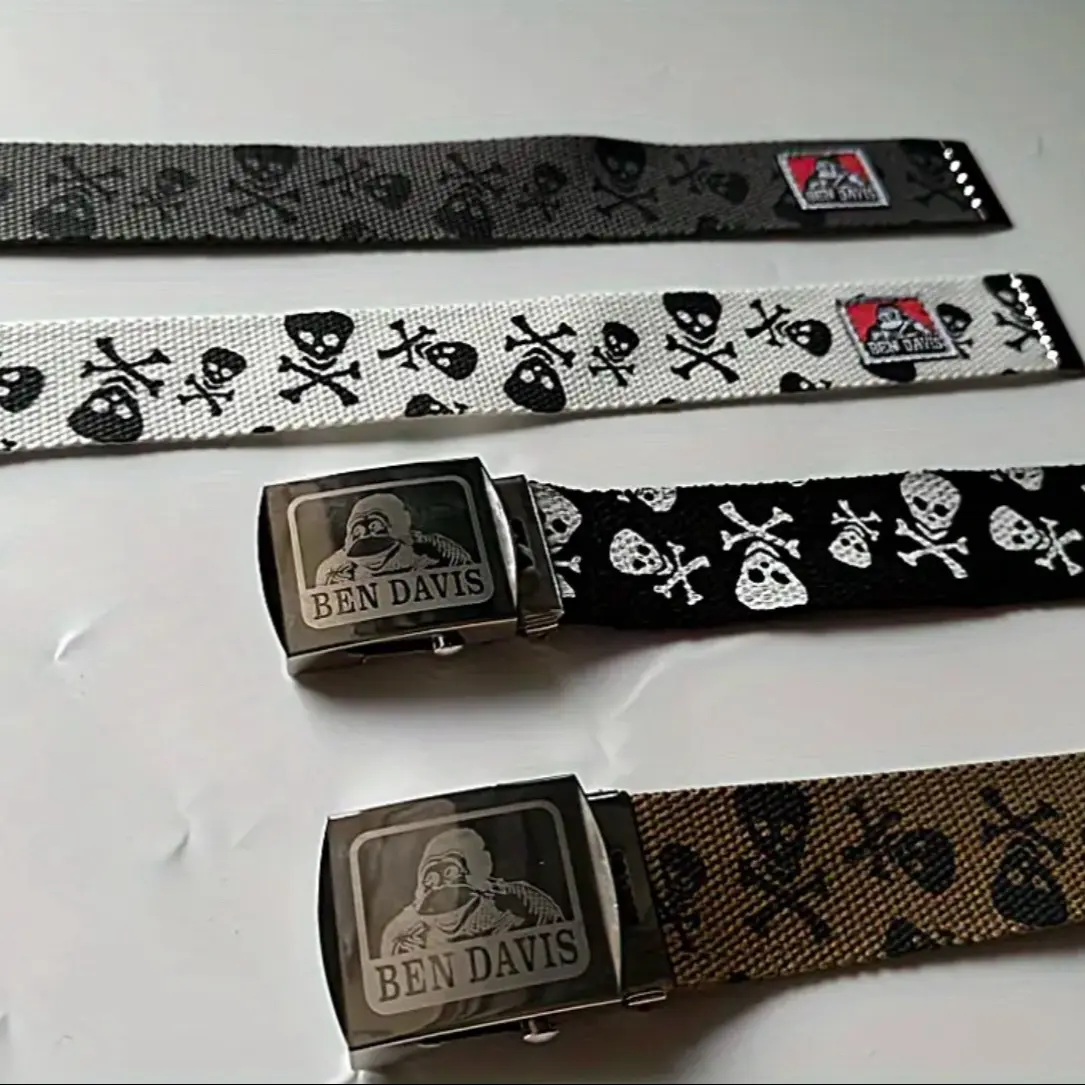 Elevate your everyday style with the Ben Davis Skull and Crossbones Belt, a