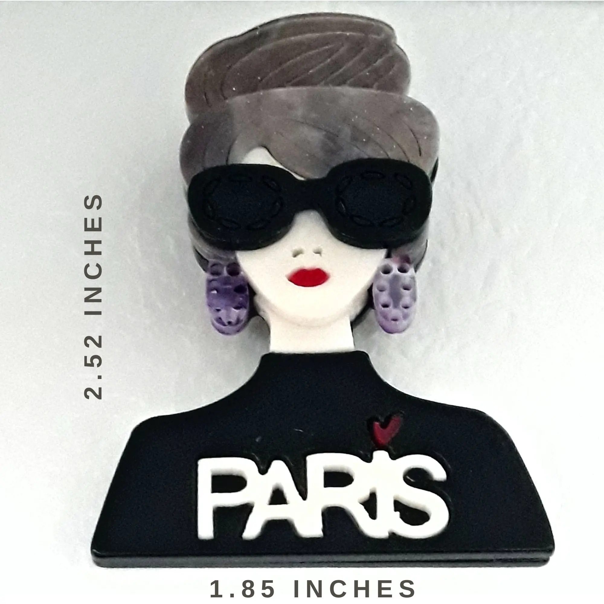 Chic Modern Paris Lady Dark Glasses Acrylic Brooch Pin - Elegant Design for Fashion Accessories