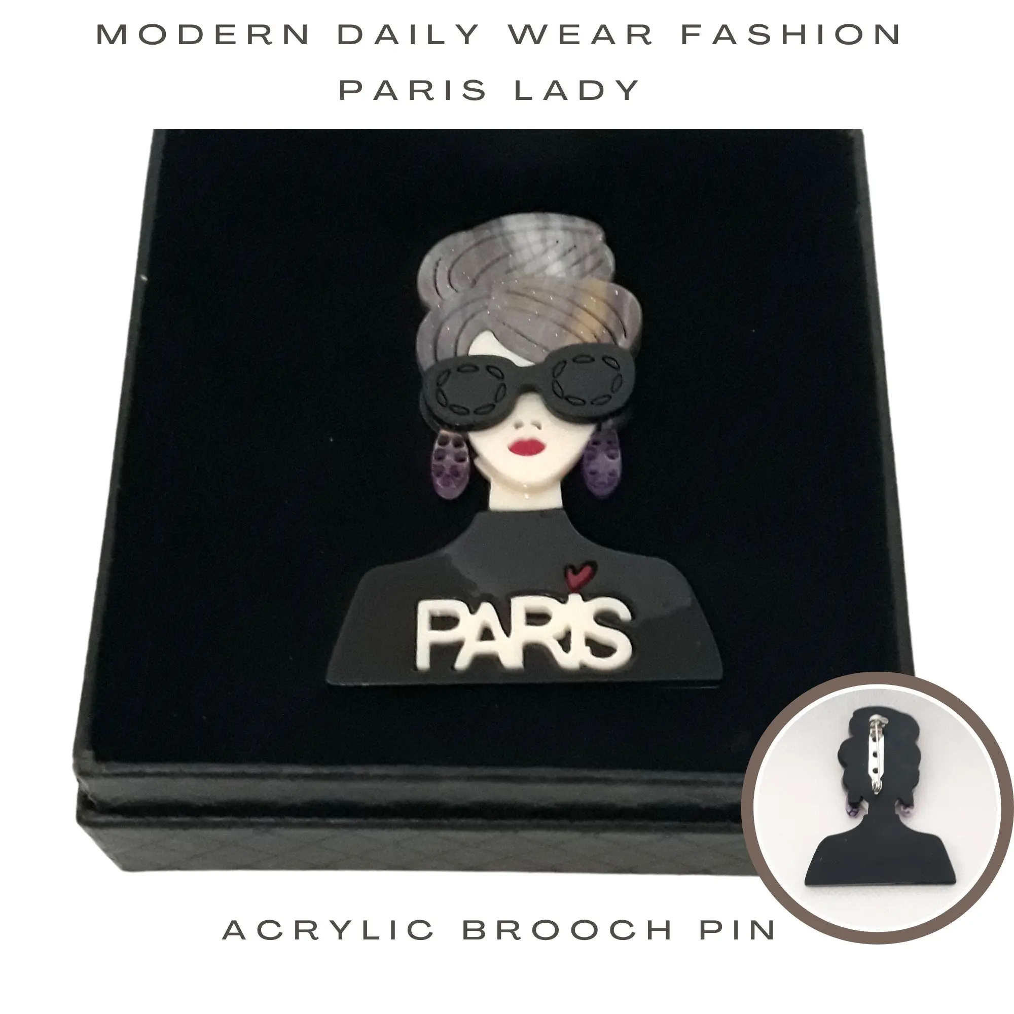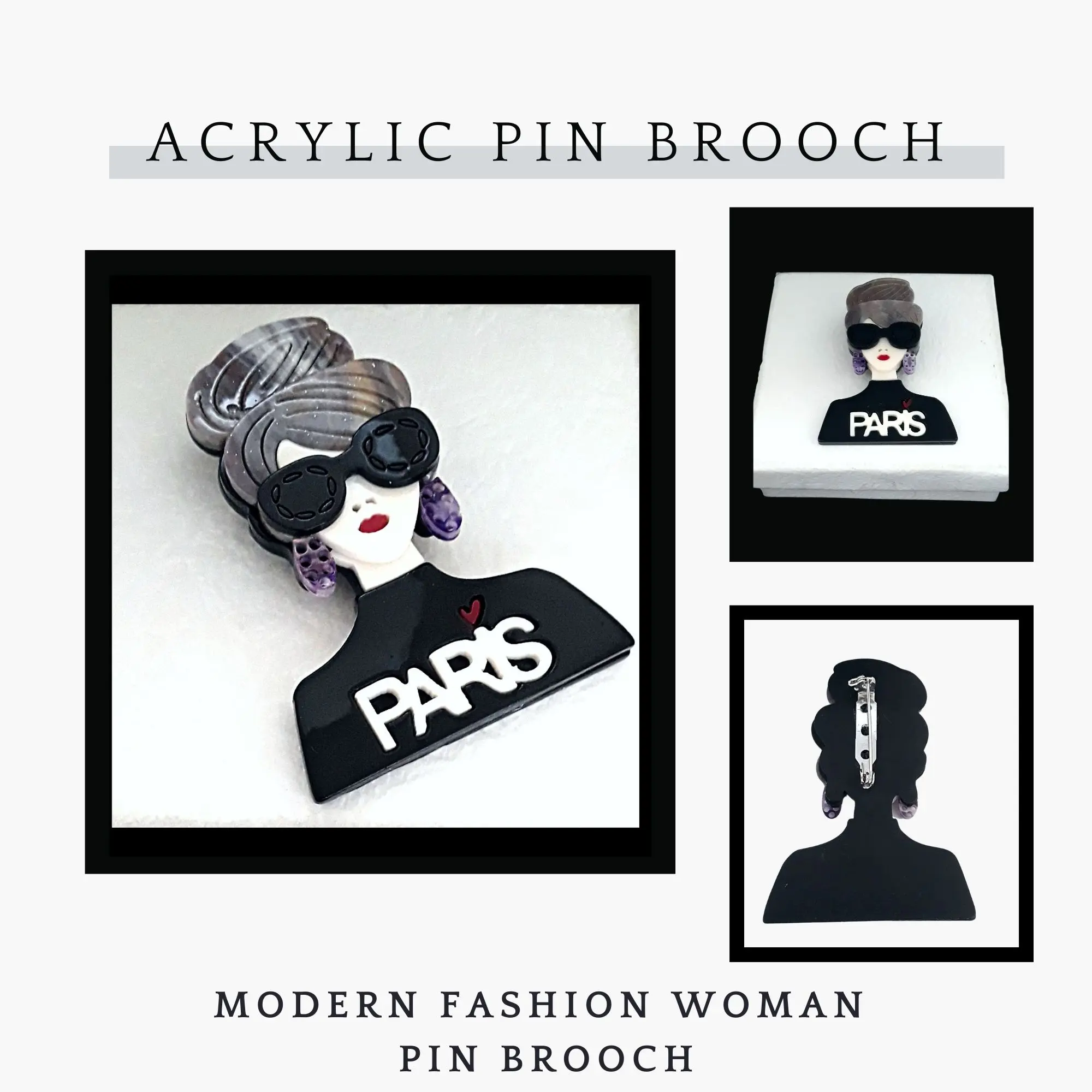 Elevate your style with these chic modern Paris lady dark glasses. These acrylic brooch pins are designed to add a touch of sophistication to any outfit.