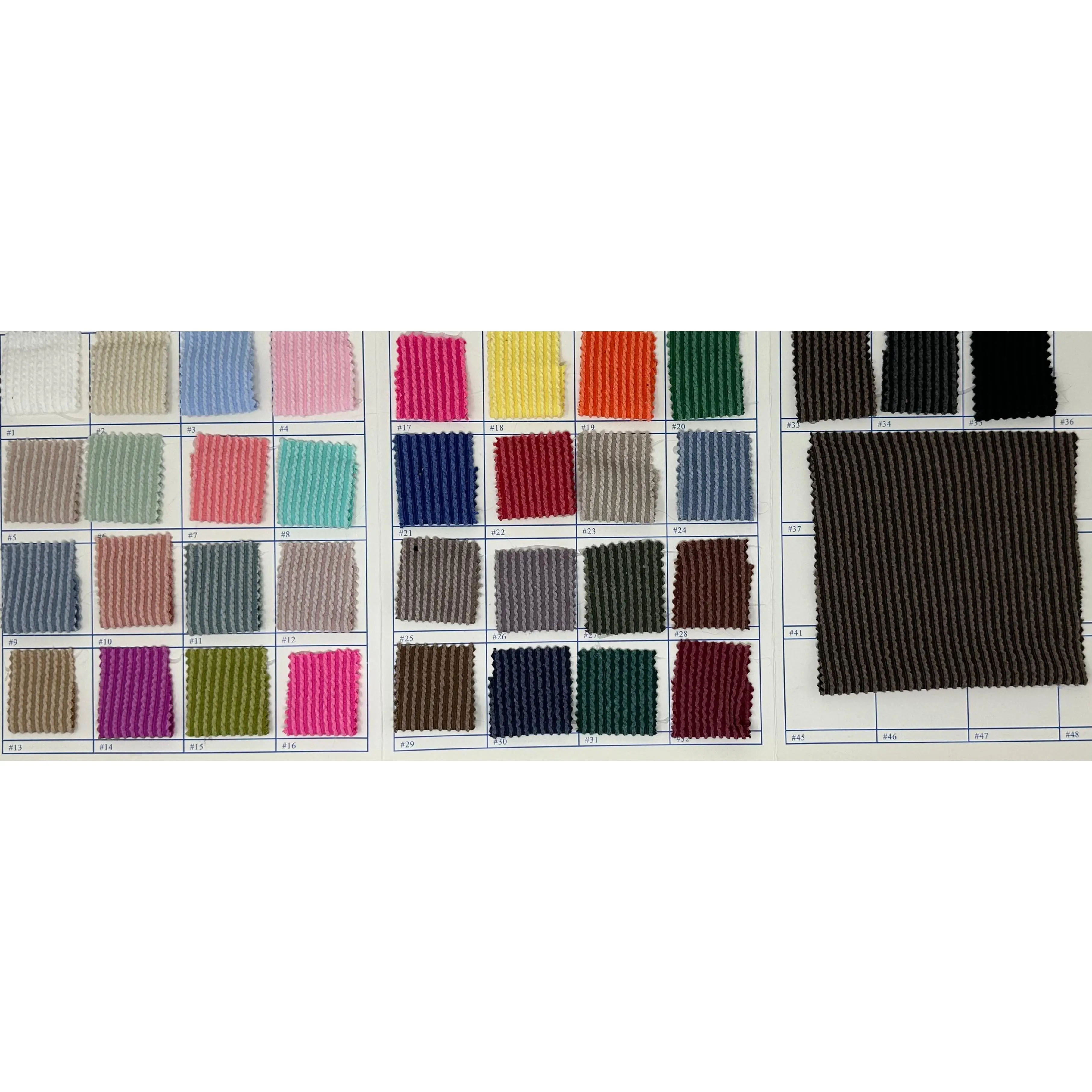 The Waved Urban Rib Knit Fabric from Express Knit Inc. is a sophisticated and versatile fabric that combines a modern waved ribbed texture with exceptional stretch and durability. Its 4-way stretch knit and medium weight (240 GSM) make it perfect for stylish and functional garments. With its unique ribbed pattern and availability in a variety of vibrant solid colors, this fabric is ideal for retail customers and wholesale orders alike.