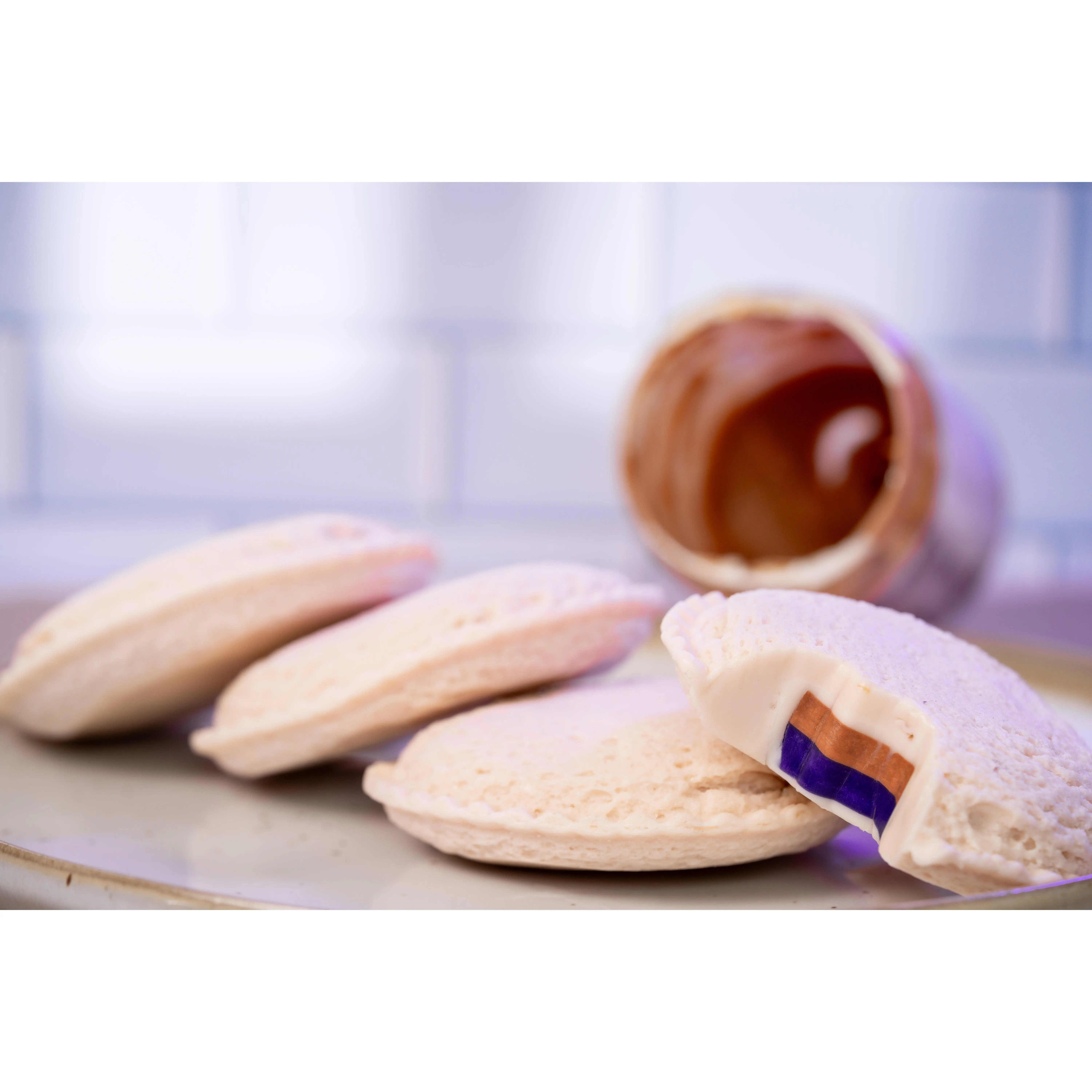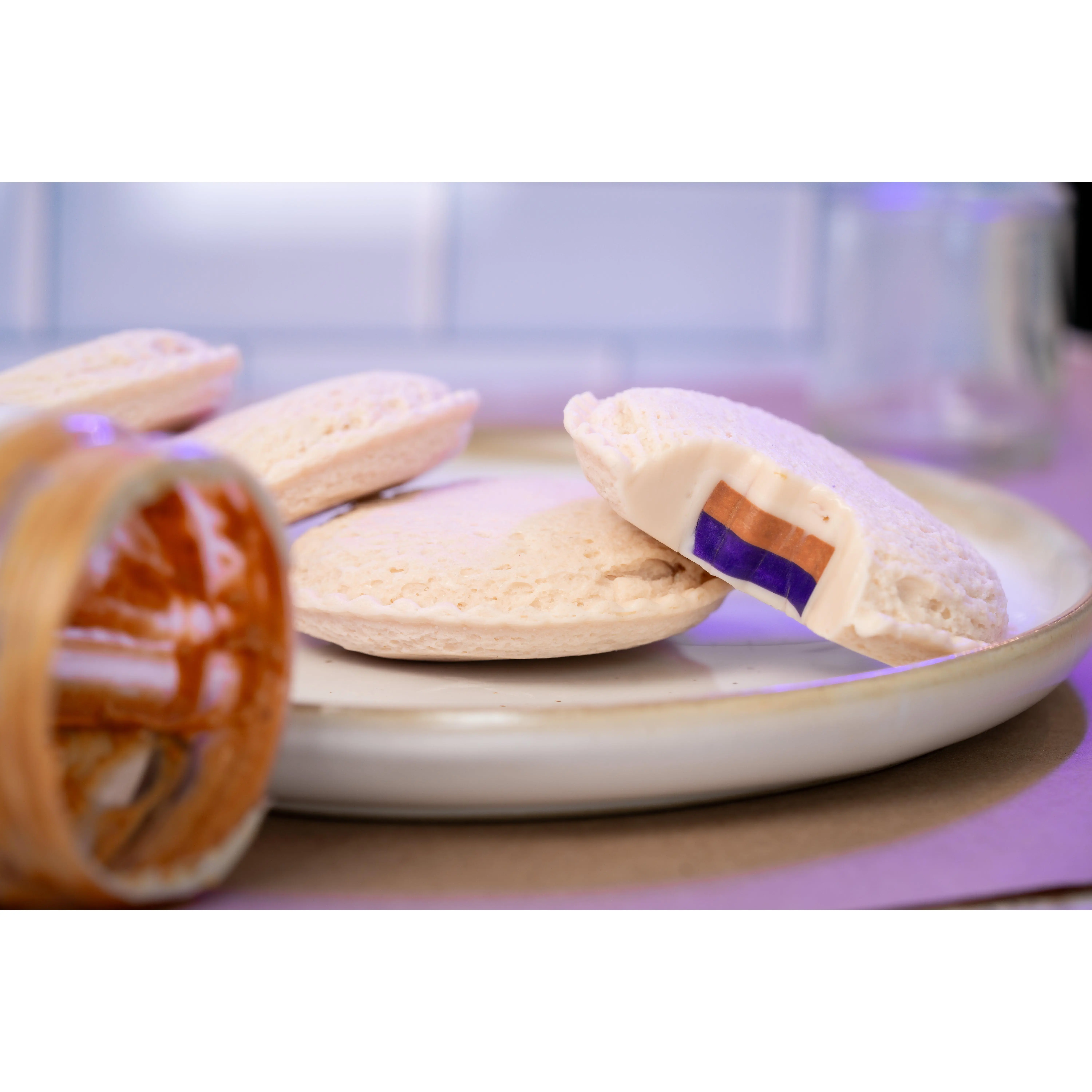 Bring your favorite peanut butter and jelly sandwich to life, now as a bar of soap! These Uncrustable inspired soap bars are ready to fill your home with silly fun and to take all your guests by surprise. Just like a real Uncrustable, these soaps have a layer of ‘peanut butter and jelly’ inside. As you use this soap, the layers of peanut butter and jelly will reveal themselves! Scented like freshly baked peanut butter cookies, this soap bar is sure to send you to PB&J heaven.